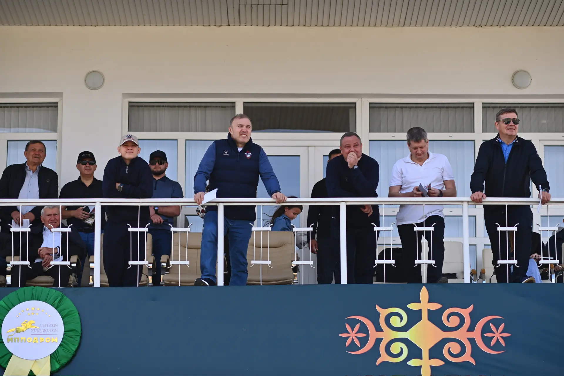 Изюминкой сегодняшнего конноспортивного праздника стало яркое выступление наших гостей – конной группы «Джигиты Муратовы» под руководством Заслуженного артиста Северной Осетии Сергея Муратова. В активе мастера – 35 лет работы с лошадьми и множество профессиональных наград. Огромный опыт наставника и талант артистов сложились в непревзойдённое мастерство в джигитовке.