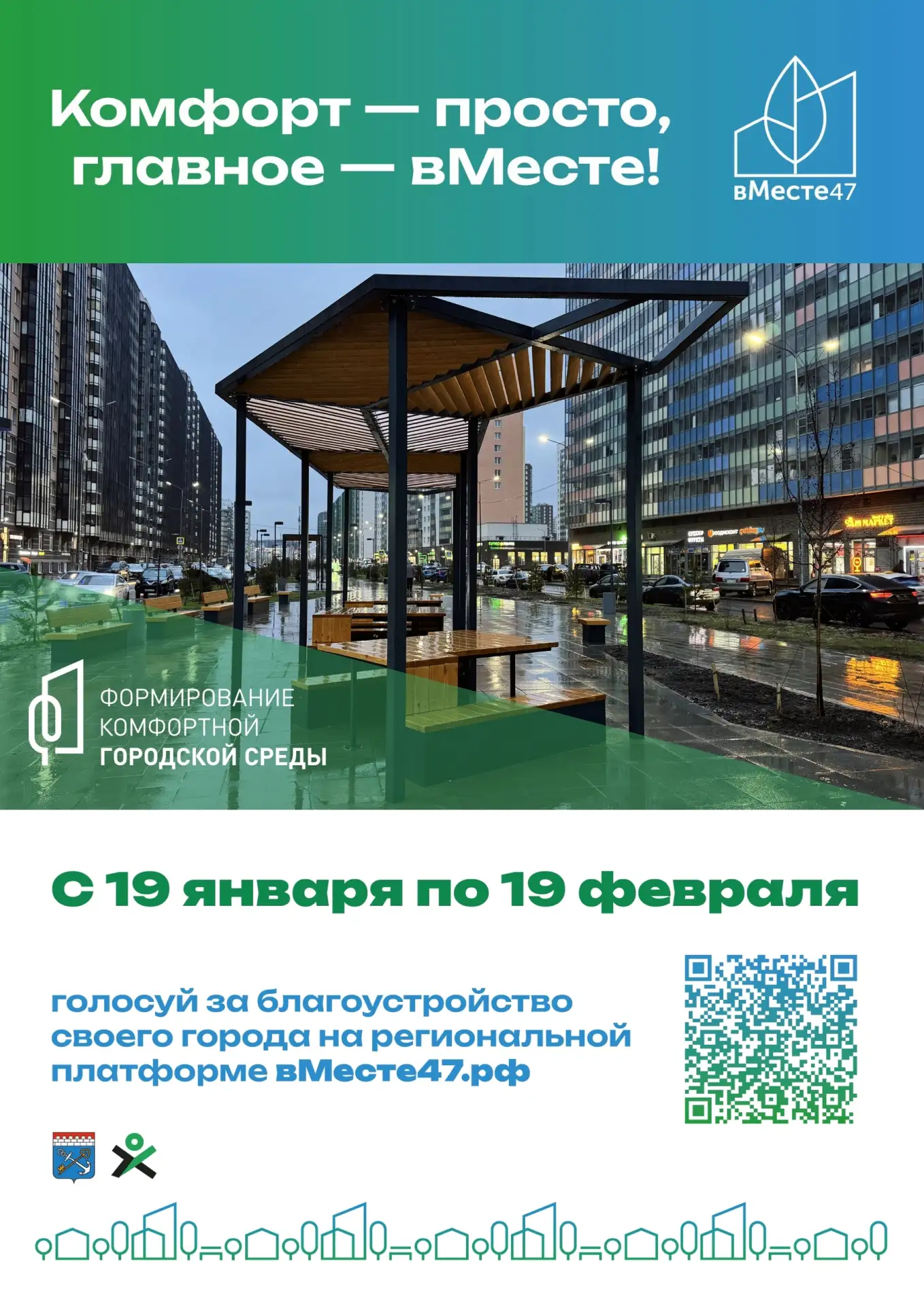 📌C 19 января по 19 февраля 2026 года в Ленинградской области проходит рейтинговое голосование по выбору общественных территорий, которые будут участвовать в Федеральном проекте «Формирование комфортной городской среды» в рамках национального проекта «Инфраструктура для жизни» в 2027 году.