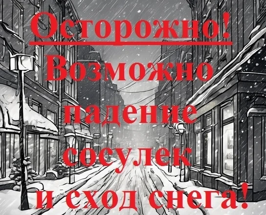 ❗Обратите внимание: возможен сход снежных масс и сосулек с крыш зданий❗