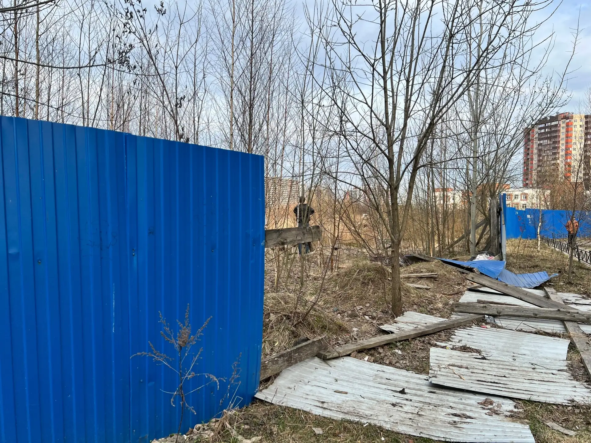 Самый социально значимый – это земельный участок возле ЖК «Тридевяткино царство» на ул. Шоссе в Лаврики. Его выделяли под строительство школы, но школы так и нет. Участок заброшен, на нем организован склад строительного мусора, забор, который должен огораживать участок для безопасности, покосился и местами разрушен.
