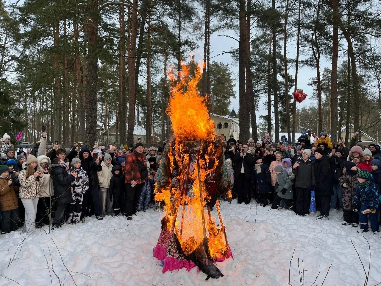 Кульминация праздника — сжигание чучела Масленицы. Зиму проводили весело и с огоньком.