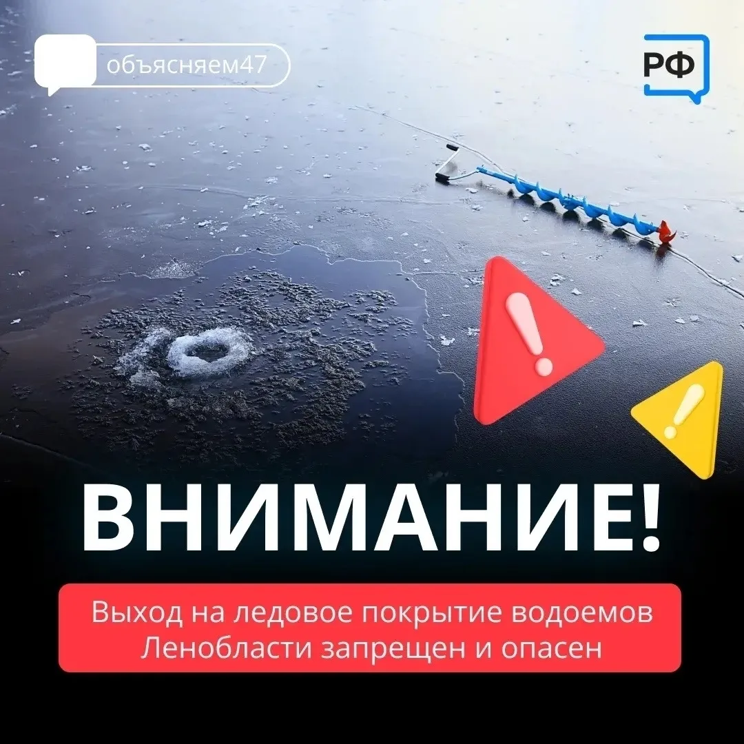 В Ленинградской области выход на лед запрещен ⚠️