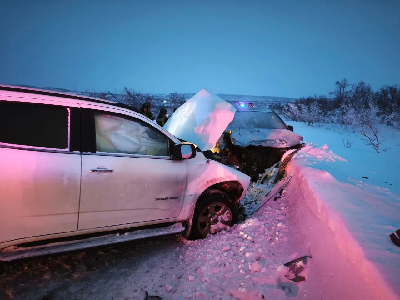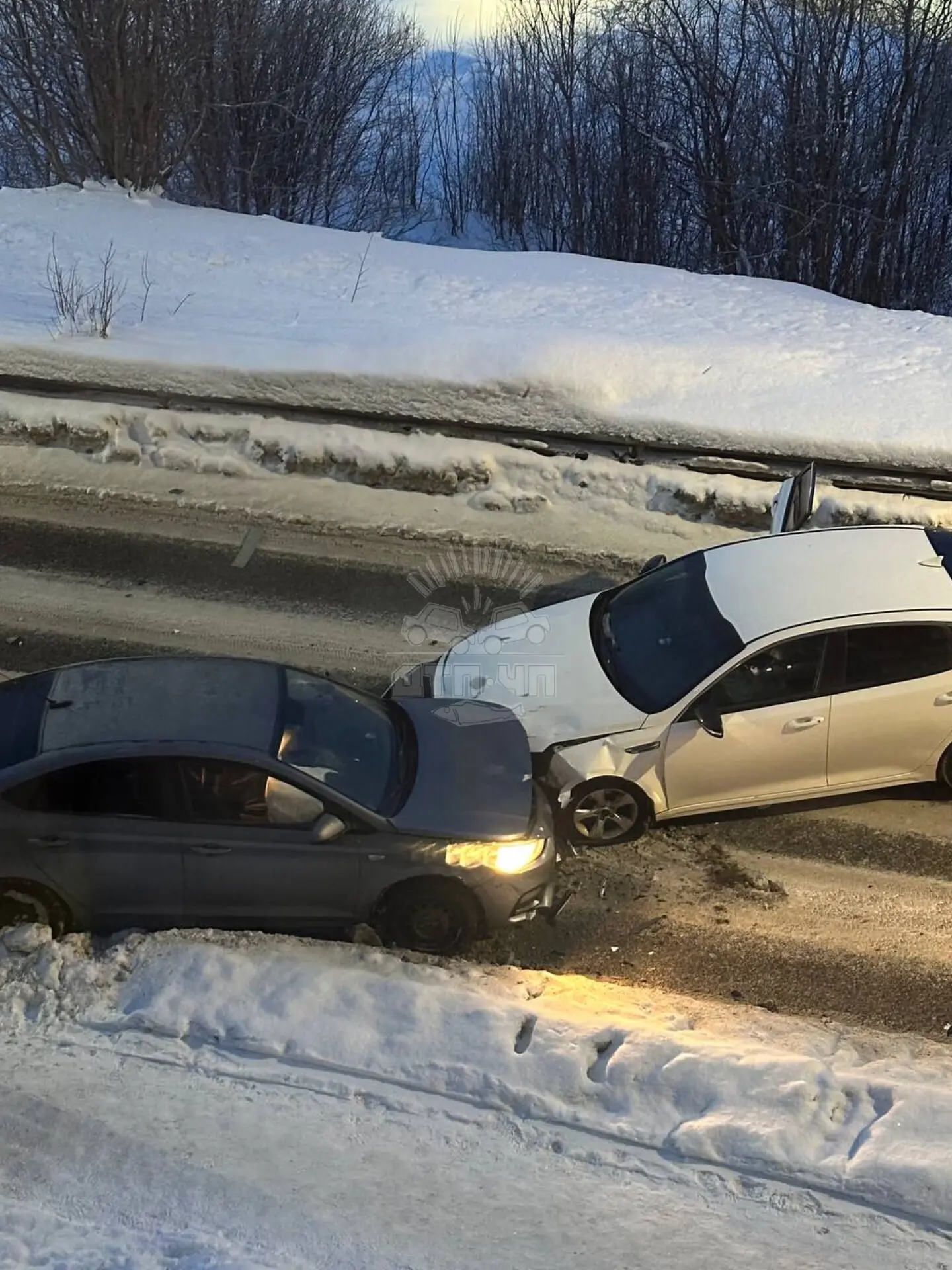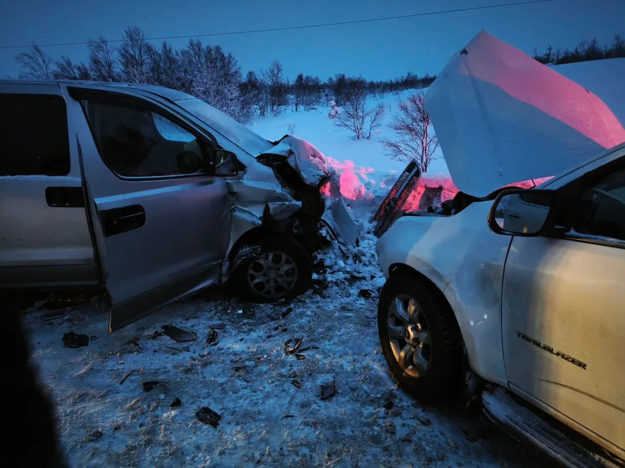 🚨На 21 км дороги Кола-Серебрянские ГЭС произошло лобовое столкновение автомобилей Chevrolet и Hyundai Starex.