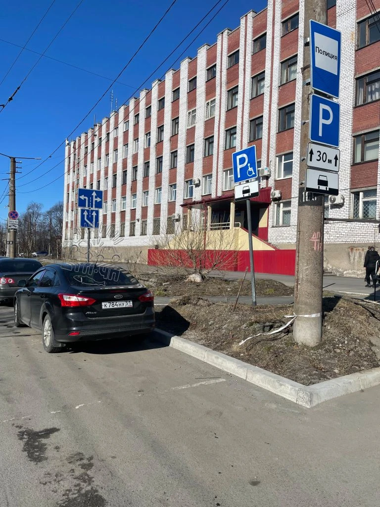 Вот так в нарушение знака 6.4.17 паркуют автомобили прямо у отдела полиции.