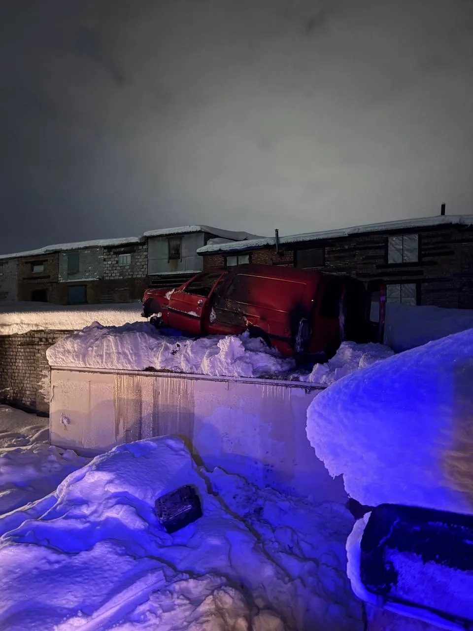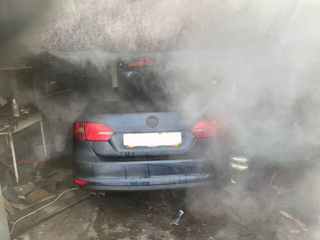 В гараже стоял автомобиль без колеса: он закопчён, но сам огонь его не повредил