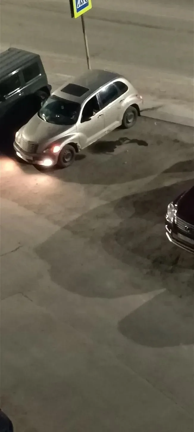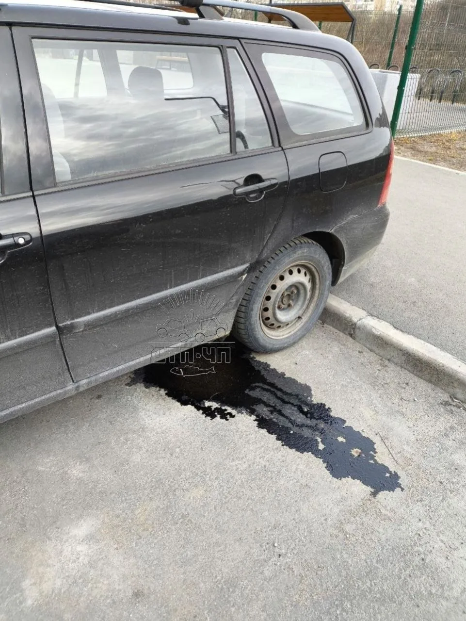 Стоит уже больше часа. Двигатель работает. Какая-то жидкость течёт из под машины. Ещё и газуют переодически.