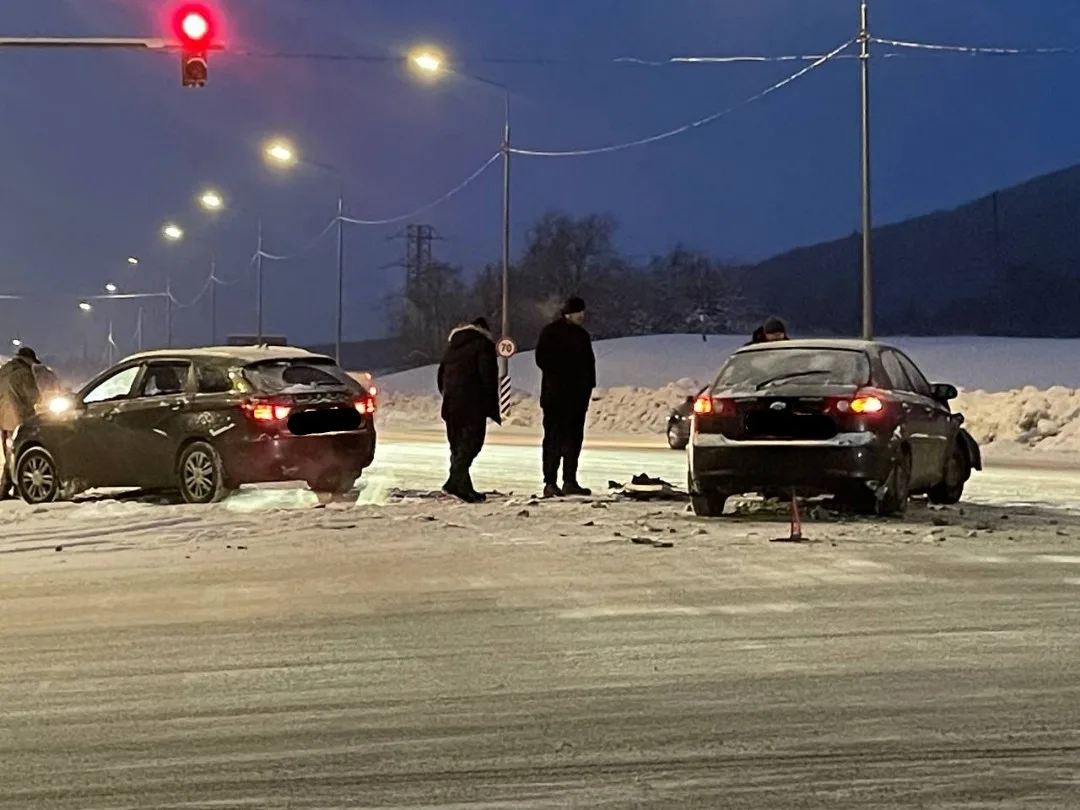 🚨На перекрестке автоподъезда к аэропорту Мурманск и дороги в Зверосовхоз столкнулись Lada Vesta и Chevrolet Lacetti.