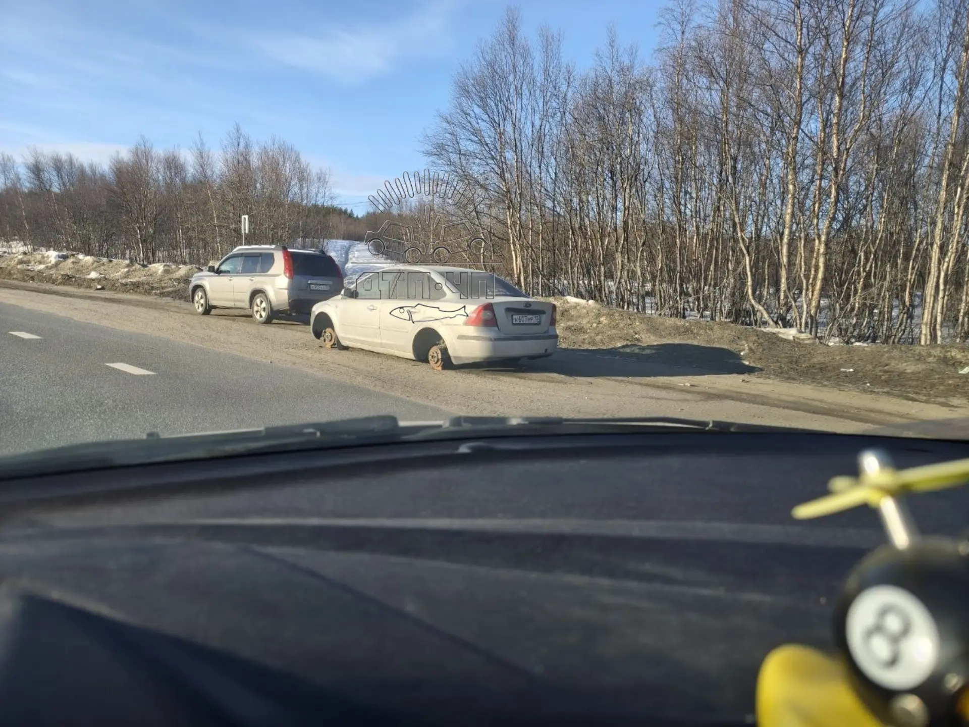 Форд фокус 2 на карельских номерах стоит на трассе напротив абрамыса у тебя сняли колёса дружище.