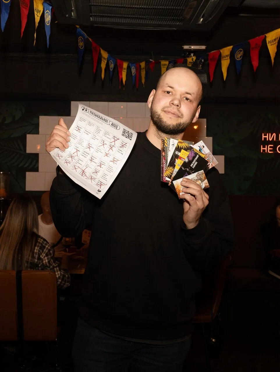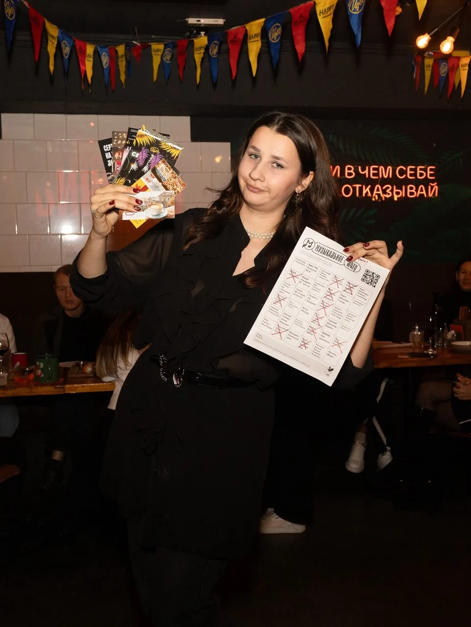 У каждого участника будет большой бланк с песнями, в котором нужно зачеркивать увиденные композиции. Первый, кто соберёт комбинацию, получает призы 💥