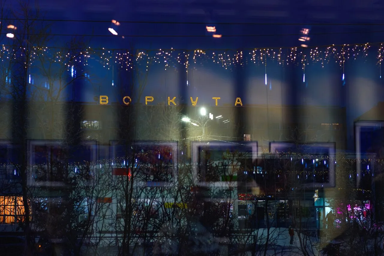P.S. Заглавный кадр поста - сегодняшнее фото, взгляд на улицу через окно с отражением фотокартин в стекле... Взгляд зацепился за слово Воркута над гостиницей, показалось нужным сделать такой кадр, как символ этого дня.