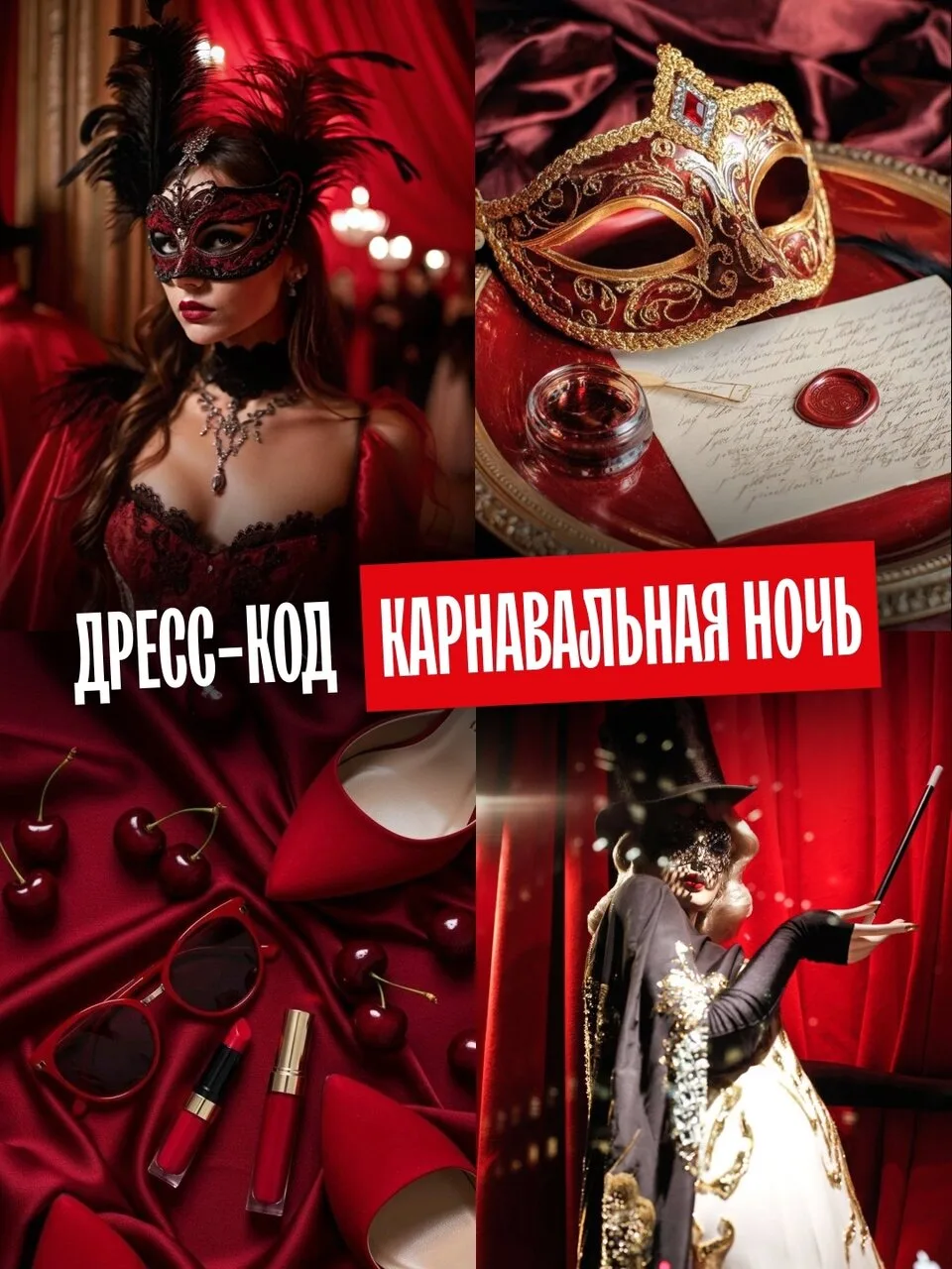 Дресс-код: красный, черный и карнавальная маска 🎭