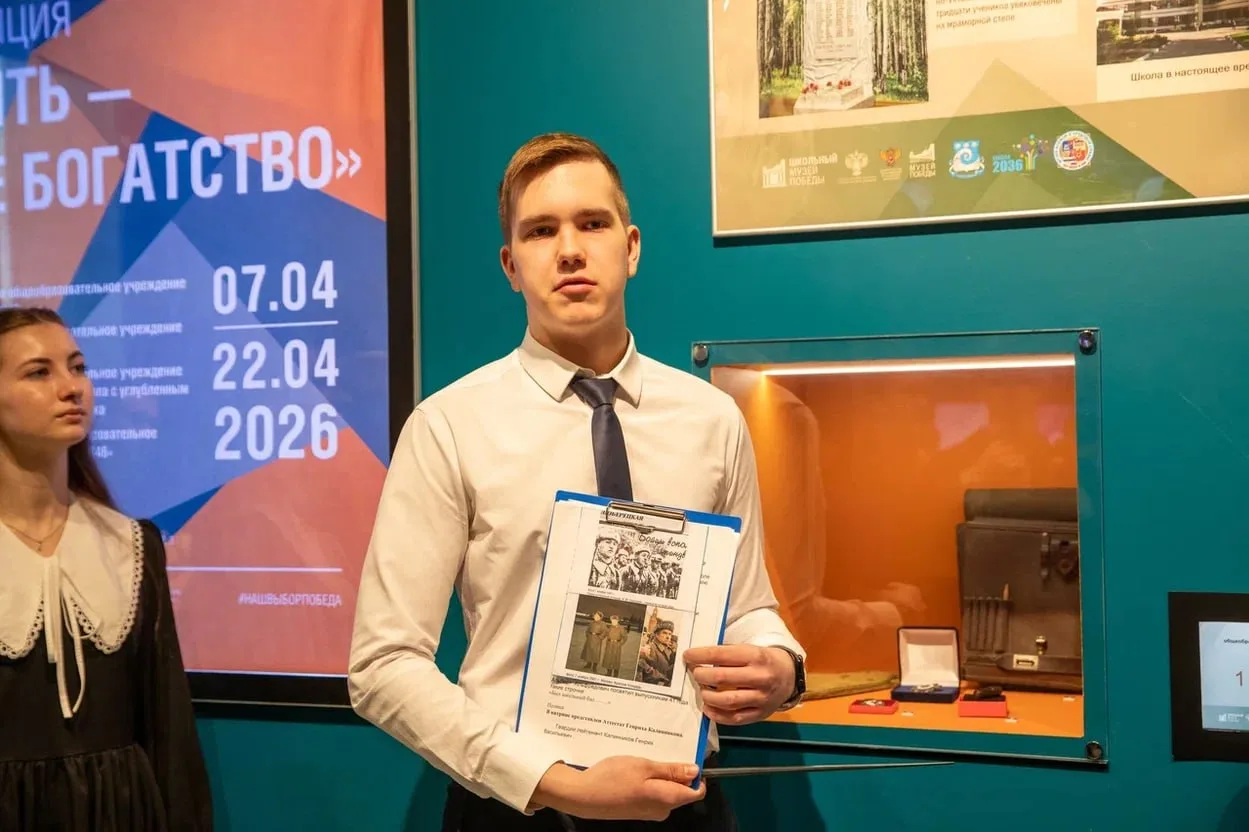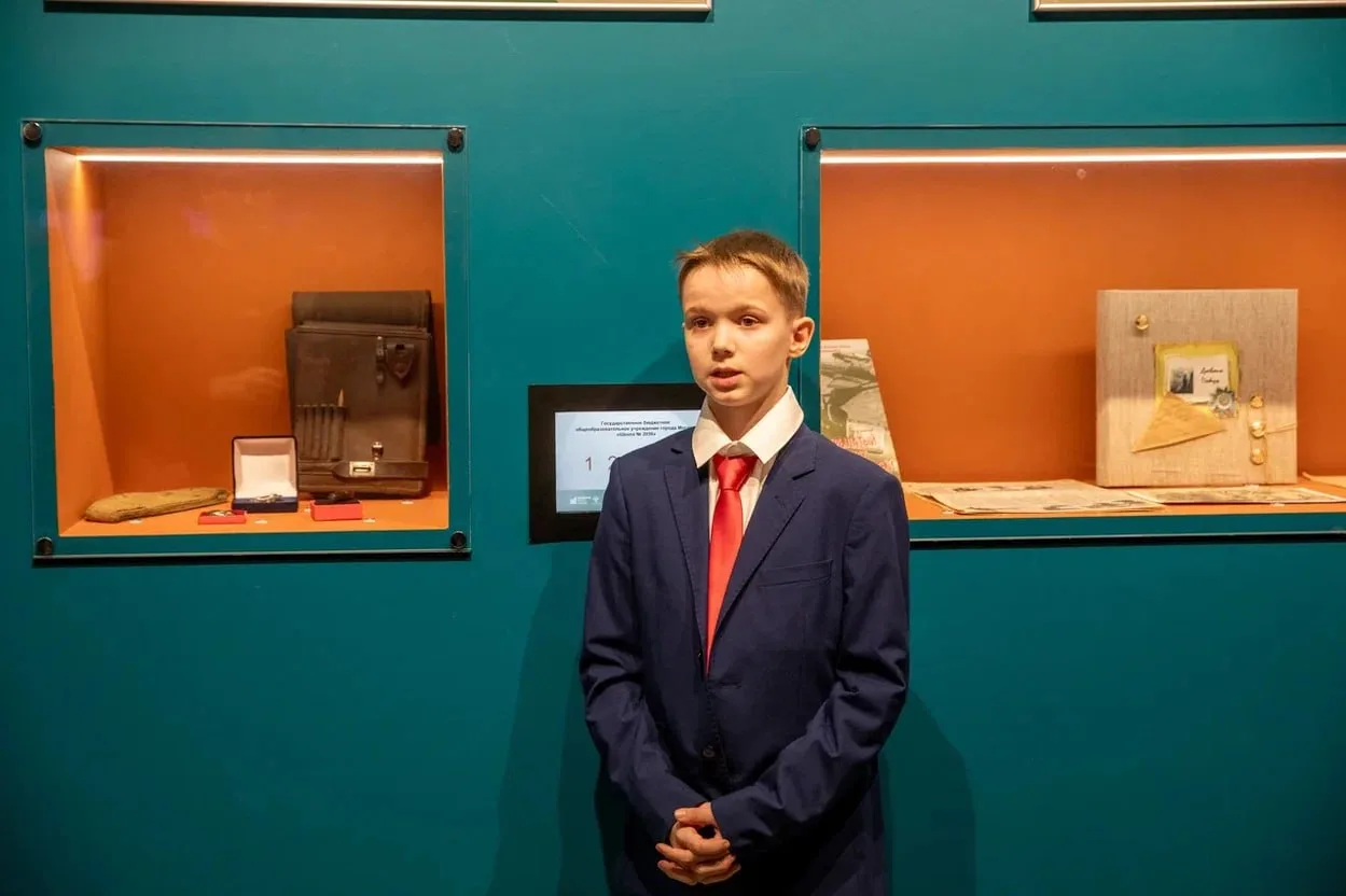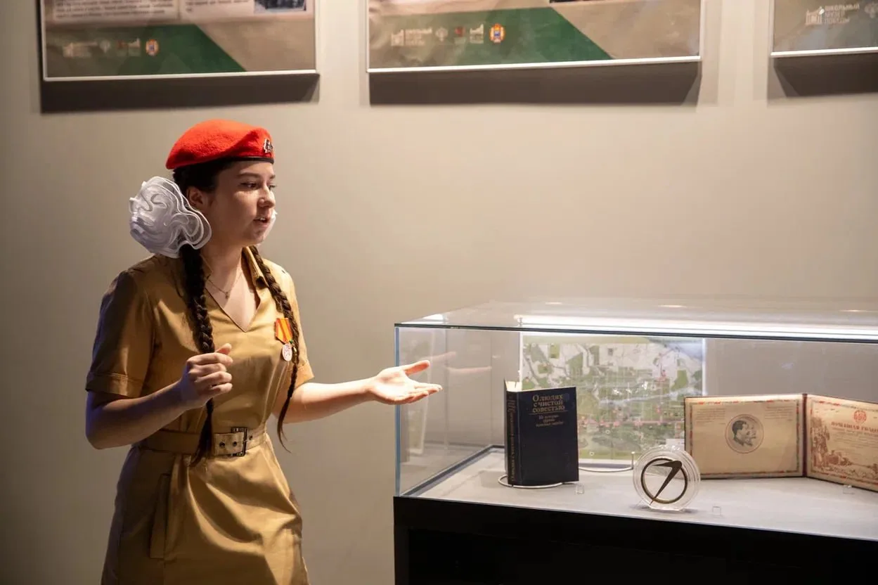 Экспозиция подготовлена в рамках программы «Школьный Музей Победы» и посвящена подвигам солдат и офицеров в годы Великой Отечественной.