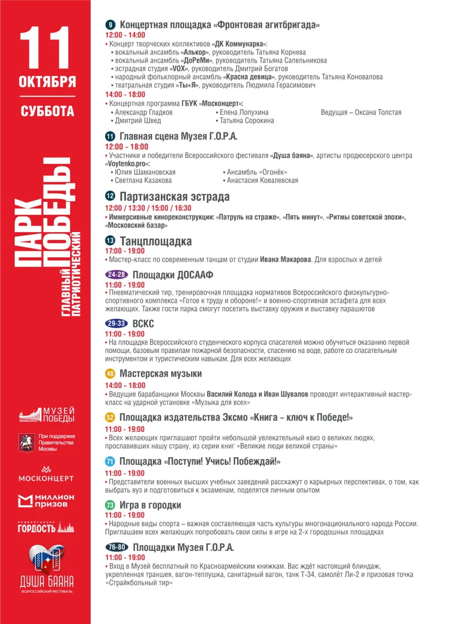27 сентября на тематической площадке у Музея Победы вас ждет: