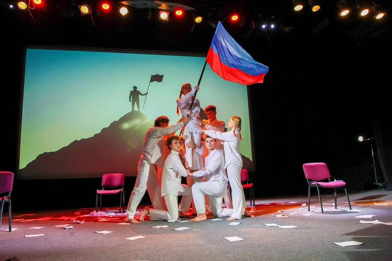 Затем состоялся Всероссийский флешмоб «Плечо к плечу», в котором приняли участие артисты Музыкального театра «На Поклонке» и студенческого театра «25 кадр» из Луганска.