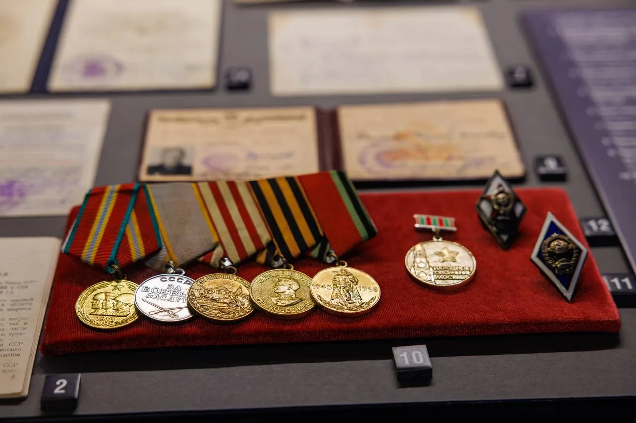 Вы увидите предметы, переданные в дар Музею Победы дочерью ополченца Викторией Валиевой. Среди уникальных экспонатов — медаль «За оборону Москвы», знак «Народное ополчение Москвы» и другие награды.