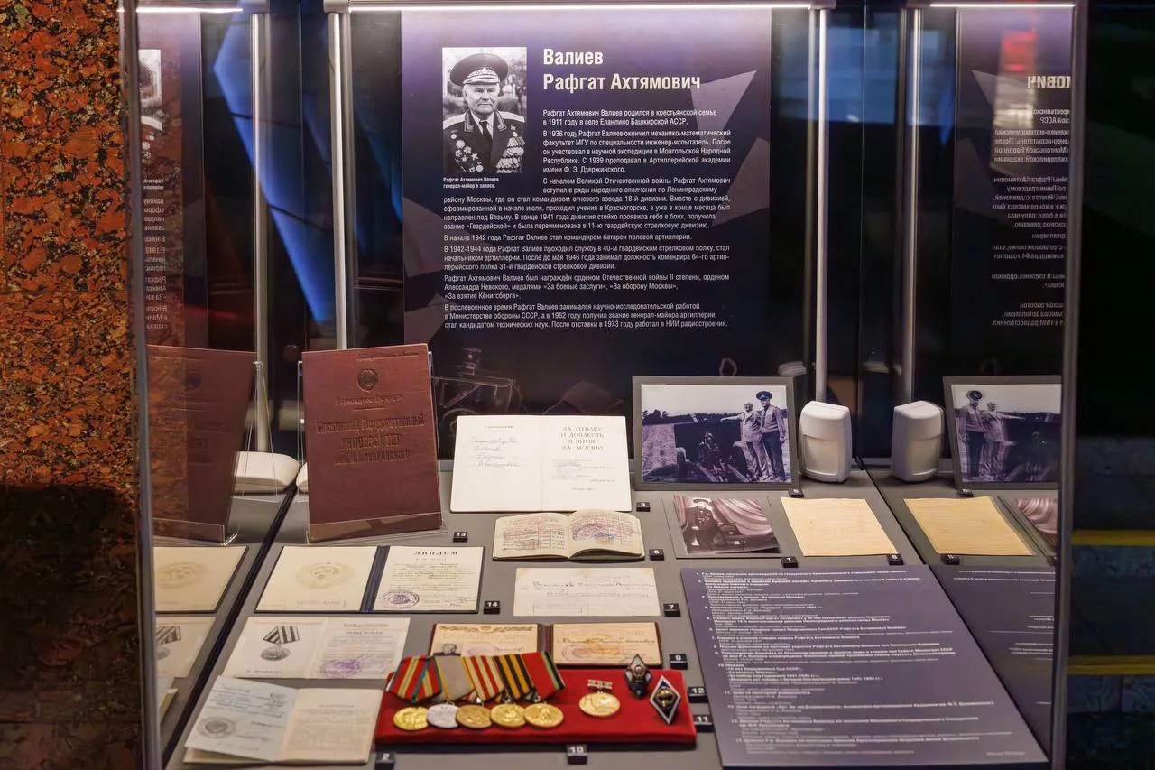 Экспозиция рассказывает о судьбе командира огневого взвода 18-й Московской стрелковой дивизии народного ополчения Рафгата Ахтямовича Валиева.