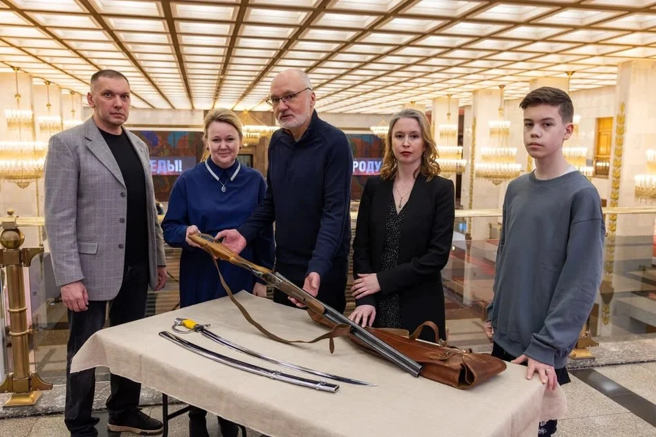 Также в передаче реликвий приняли участие внучка Героя Вера Рындич и его правнук Илья Черняев. Потомки много лет хранили охотничье ружье деда с дарственной надписью от министра обороны, Маршала Советского Союза Георгия Жукова.