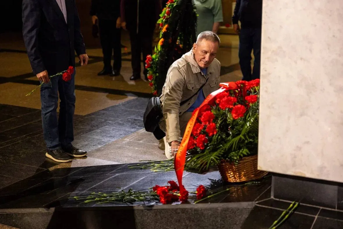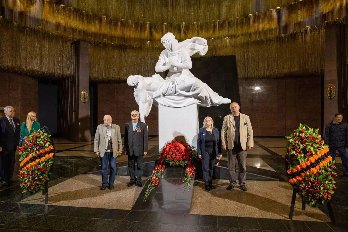 Гости почтили память погибших на фронтах Великой Отечественной войны и возложили цветы в Зале Памяти и Скорби, а также посмотрели 3D-инсталляцию «Дорога к Победе» в Зале Славы.