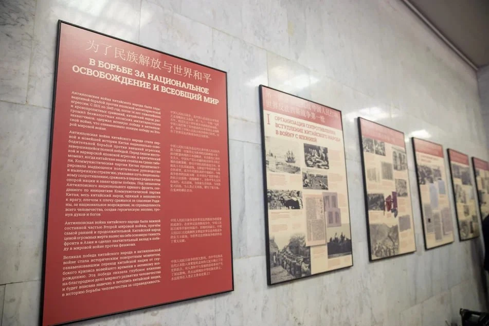 Посетители увидят около 100 уникальных исторических фотографий и десятки оцифрованных реликвий, рассказывающих о роли Китая во Второй мировой войне и укреплении международного историко-культурного диалога.