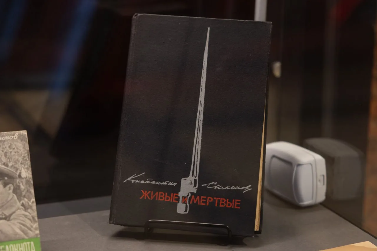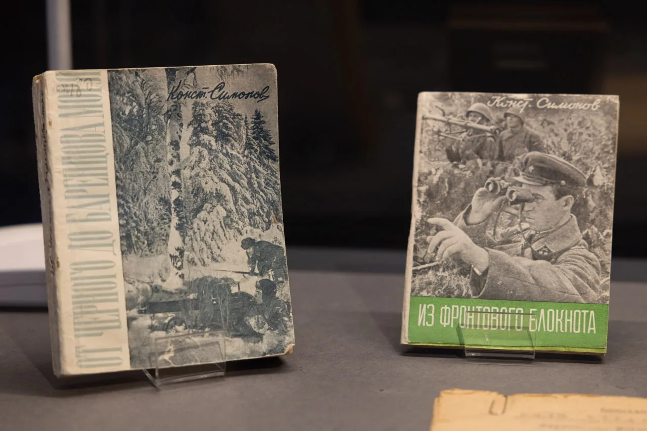 В годы Великой Отечественной Константин Симонов служил военным корреспондентом. В экспозиции представлены сборники его фронтовых очерков и записок, архивные документы и фотографии, книга «Живые и мертвые» с авторским автографом.