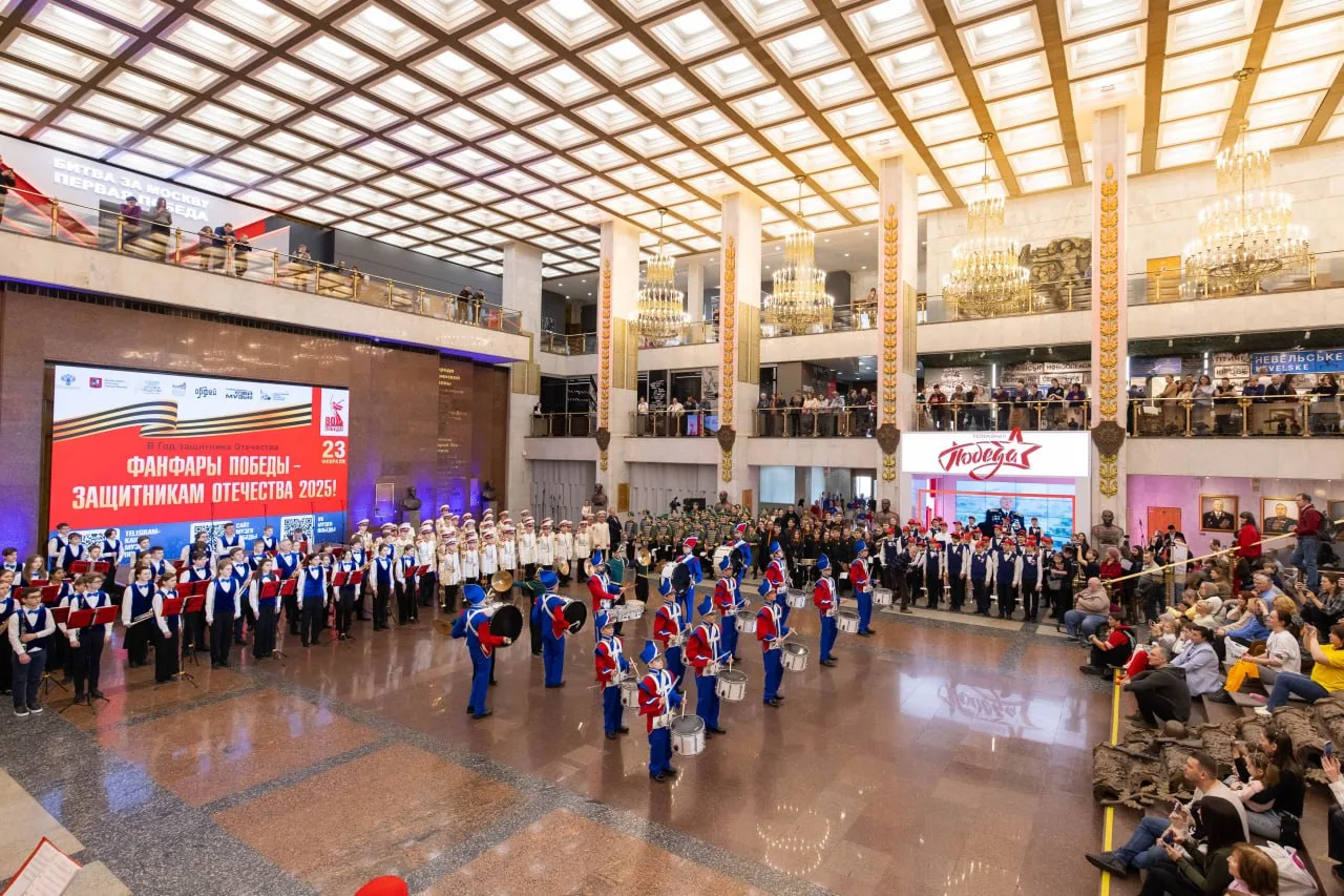 🎺 11:00 – 12:30 в Зале Полководцев — концерт «Фанфары Победы — защитникам Отечества — 2026!». Более 500 юных музыкантов выступят в составе сводного духового оркестра и хора.