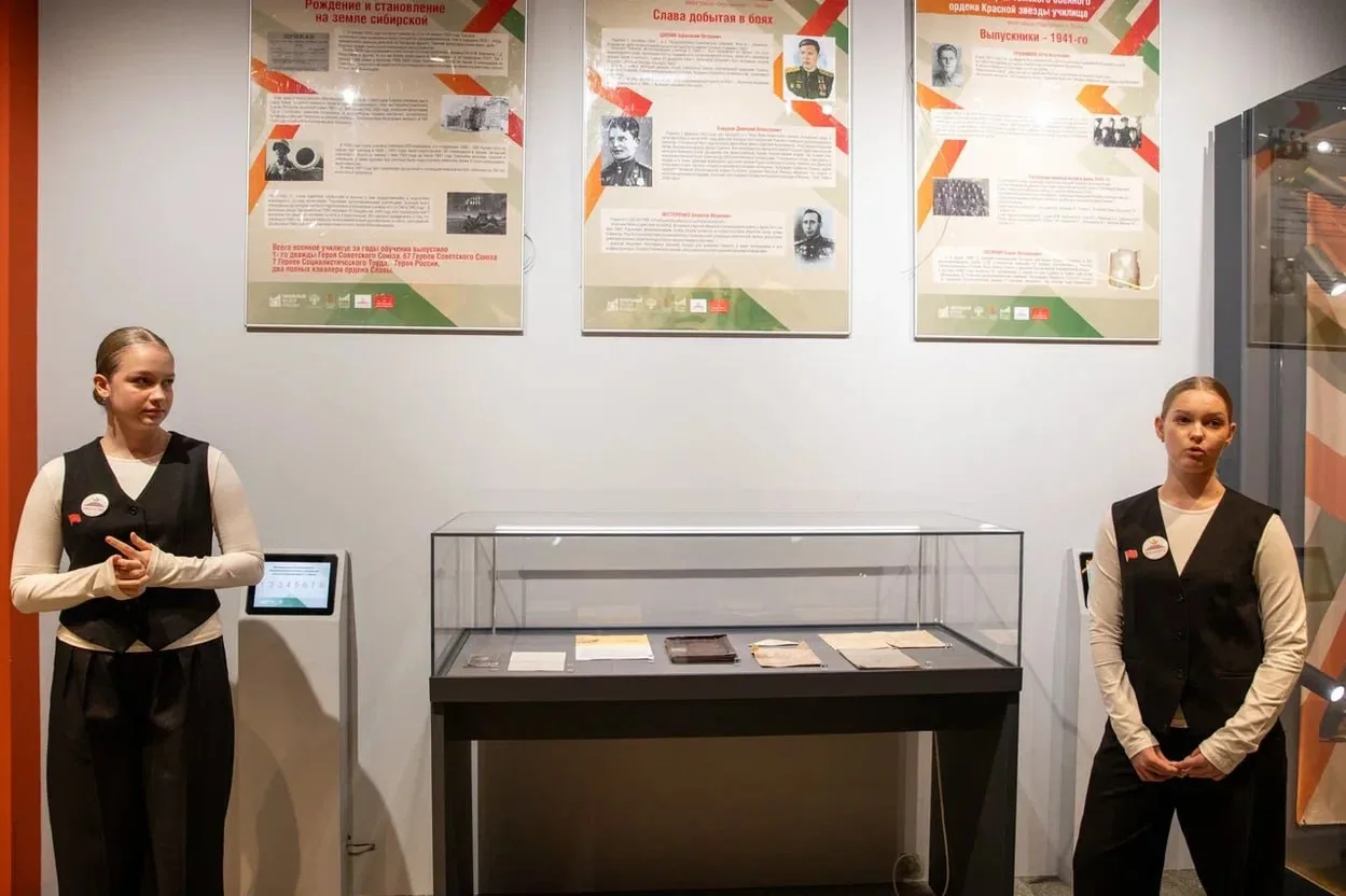 Отдельный раздел выставки знакомит с историей Томского военного училища и историями его выпускников, в частности, с Героя Советского Союза Дмитрия Бакурова.