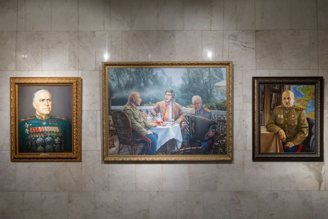 Центральное место заняло монументальное полотно «Наша Победа!» кисти Олега Маслова. Художник рассказал, что работа длилась два года, в течение которых он не только занимался композицией, но и посещал архивы. Автор уверен, переданная в Музей Победы картина станет важным инструментом сохранения исторической памяти.