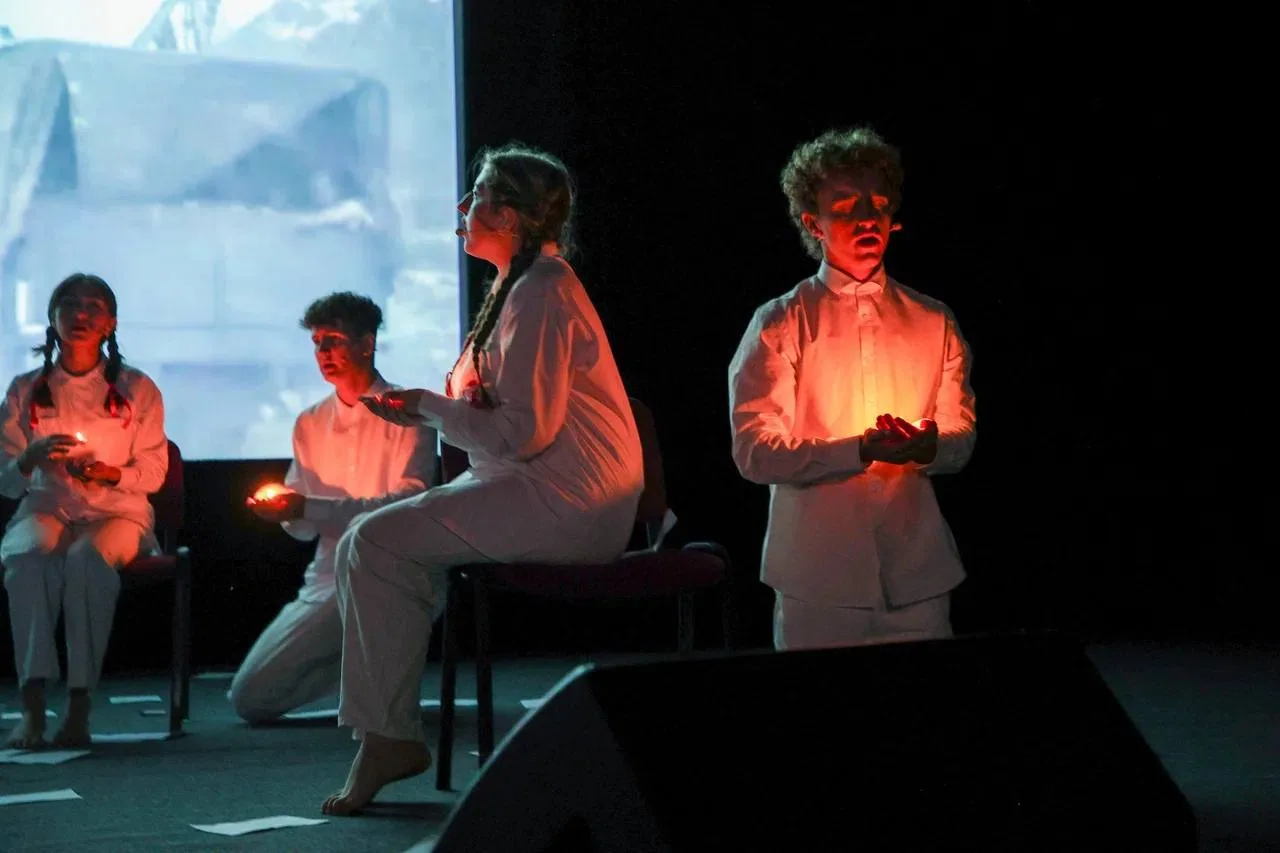 Сегодня наши гости смогли увидеть спектакль «Наша молодая гвардия», проводящий параллели между событиями 80-летней давности и нашим временем.