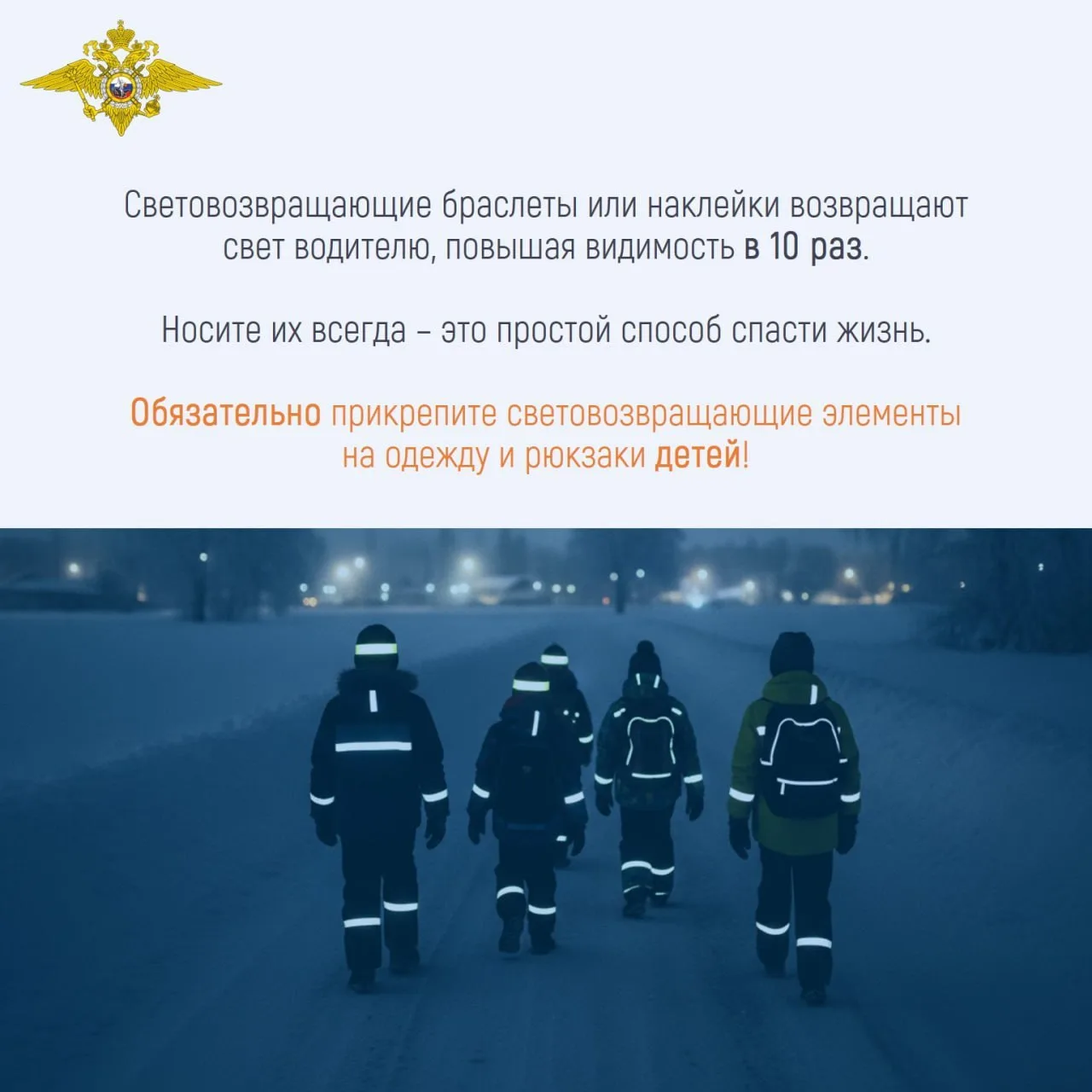 Родителям напоминаем о необходимости использования световозвращающих элементов на одежде ребёнка в тёмное время. Держать детей за руку возле проезжей части. Не разрешать играть детям у дороги и на парковочных зонах. Для катания с горок выбирать безопасные места (без деревьев, заборов, выхода на дорогу). Помнить об опасности тонкого льда на водоёмах.