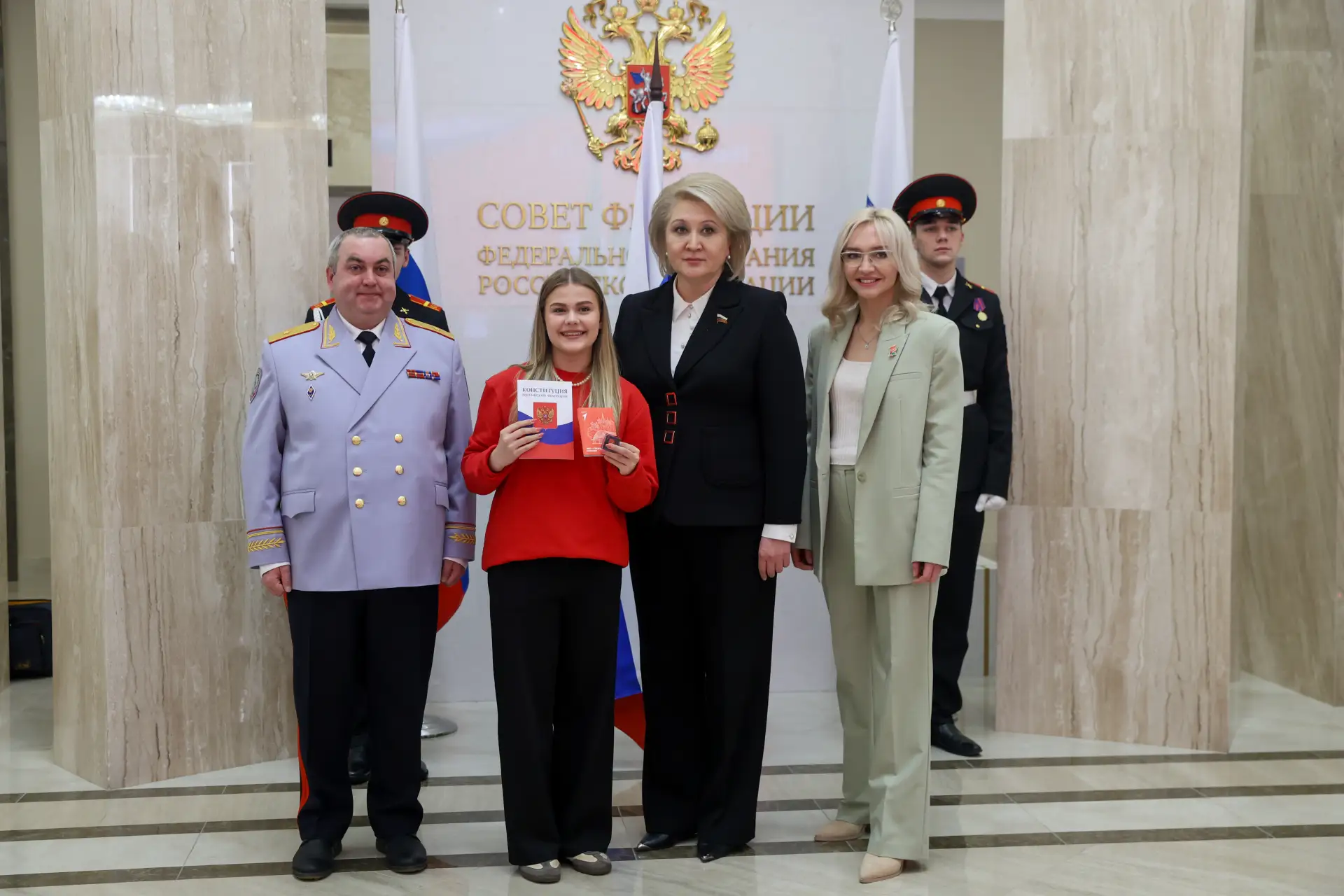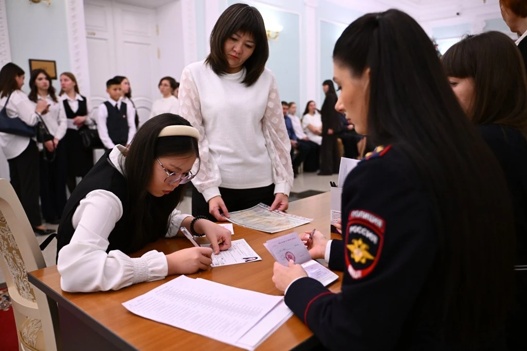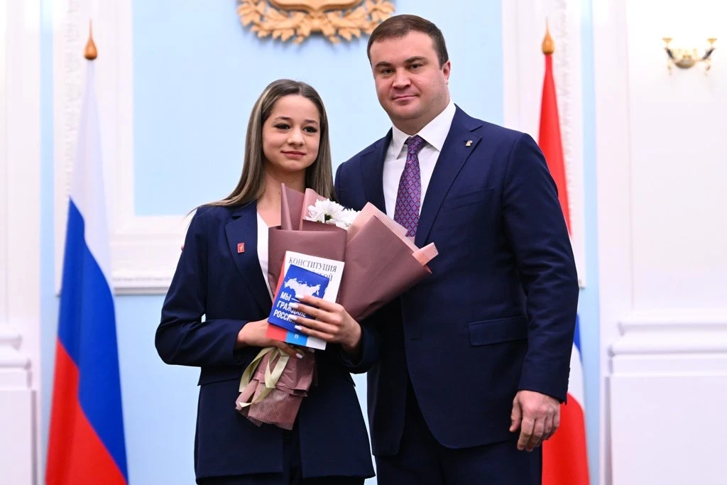 На церемонии вручения паспорта молодые люди зачитали слова торжественной клятвы гражданина Российской Федерации.