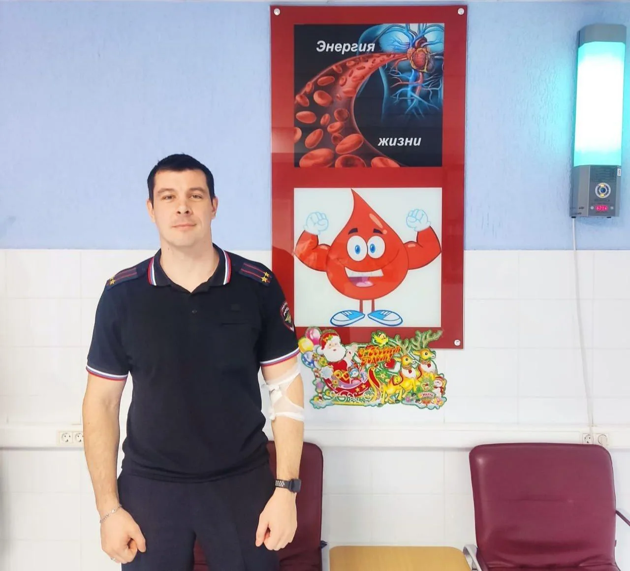 Наш коллега – старший специалист отделения профессиональной подготовки УМВД России по городу Новороссийску подполковник полиции Сергей Шишкин в 50-й раз сдал кровь.