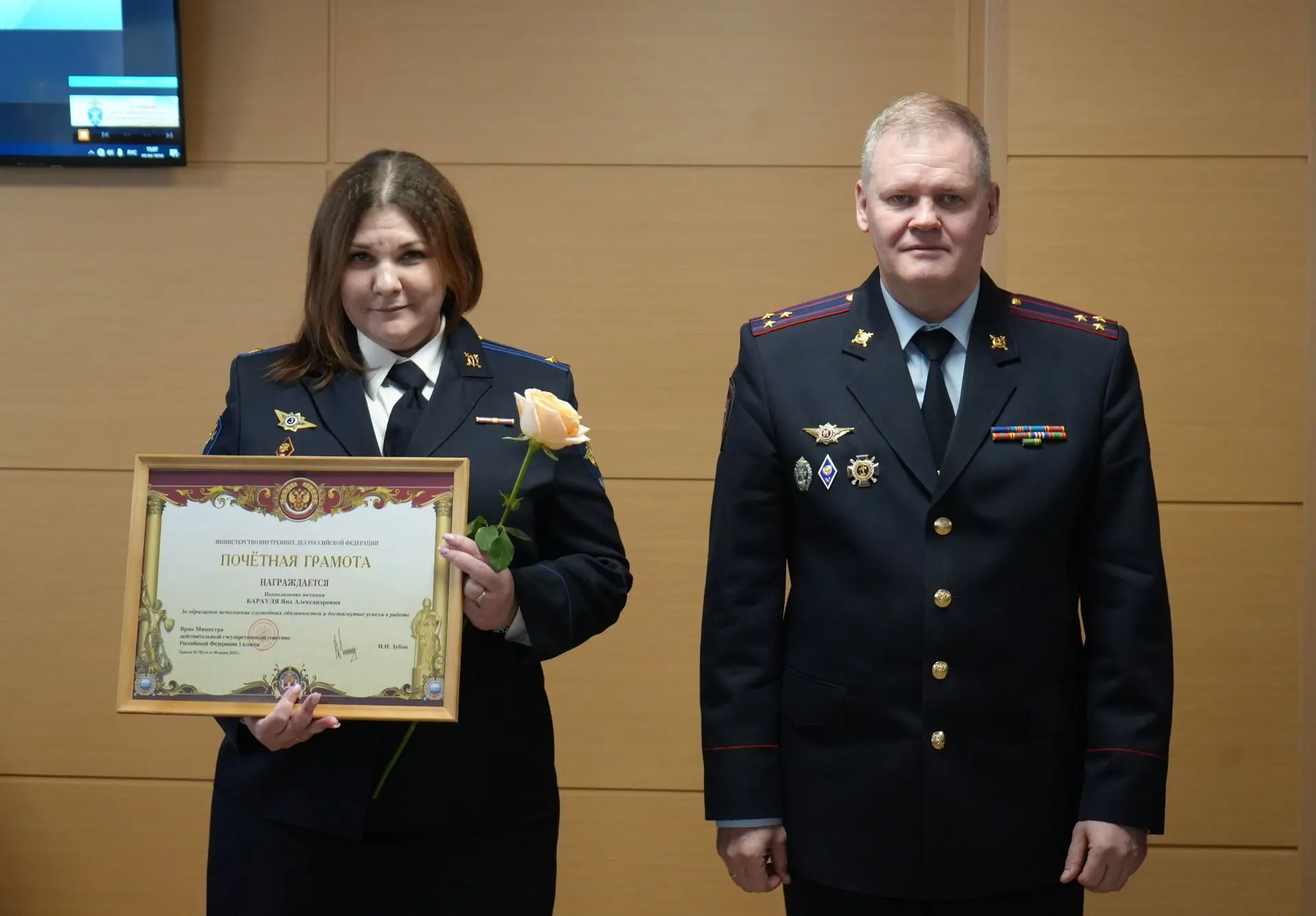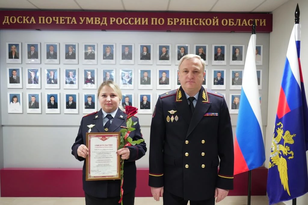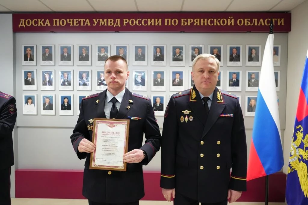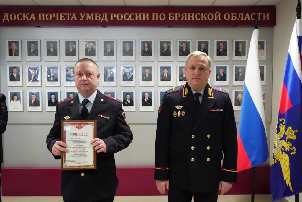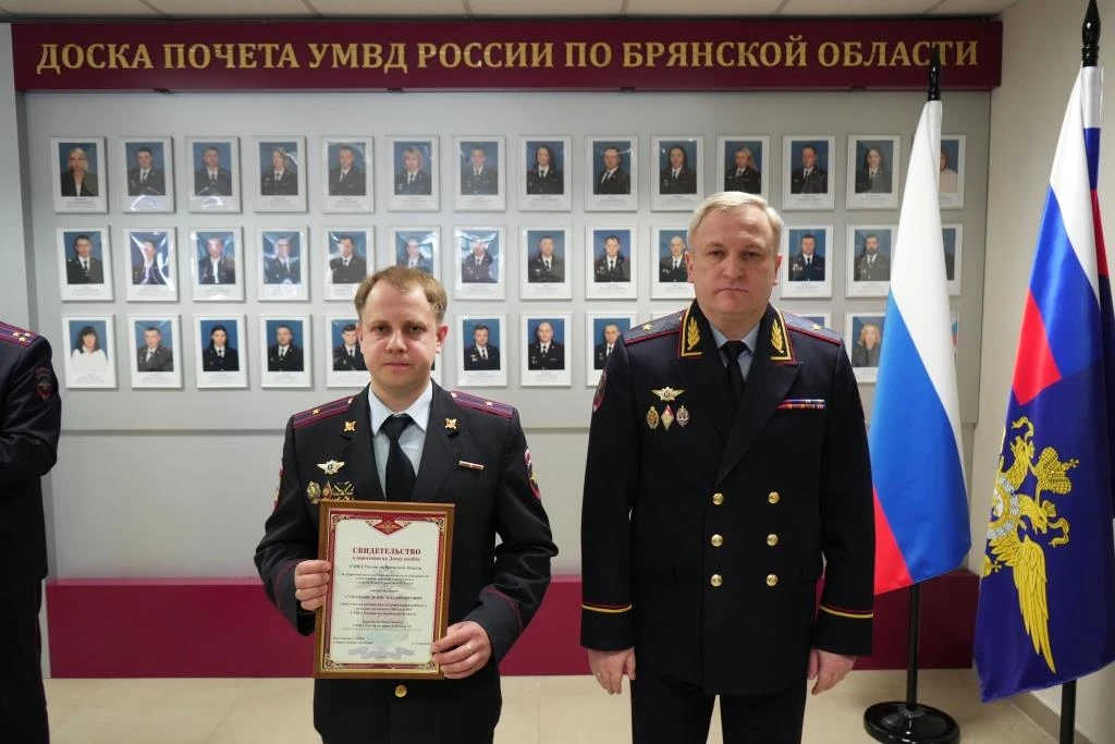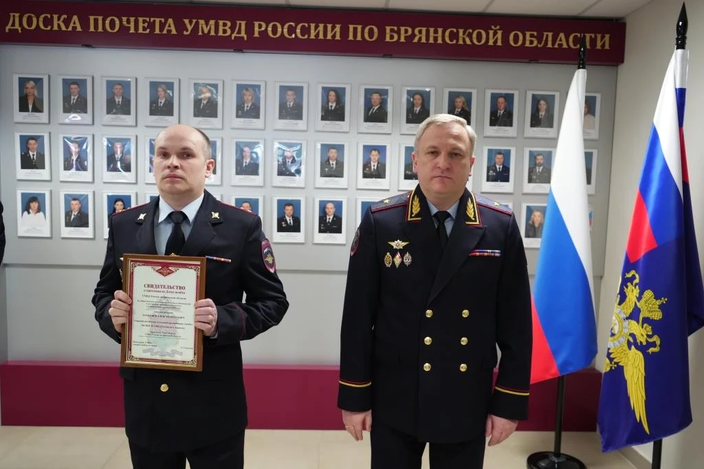 ⭐️ В УМВД России по Брянской области прошла церемония вручения именных свидетельств о занесении на Доску почета