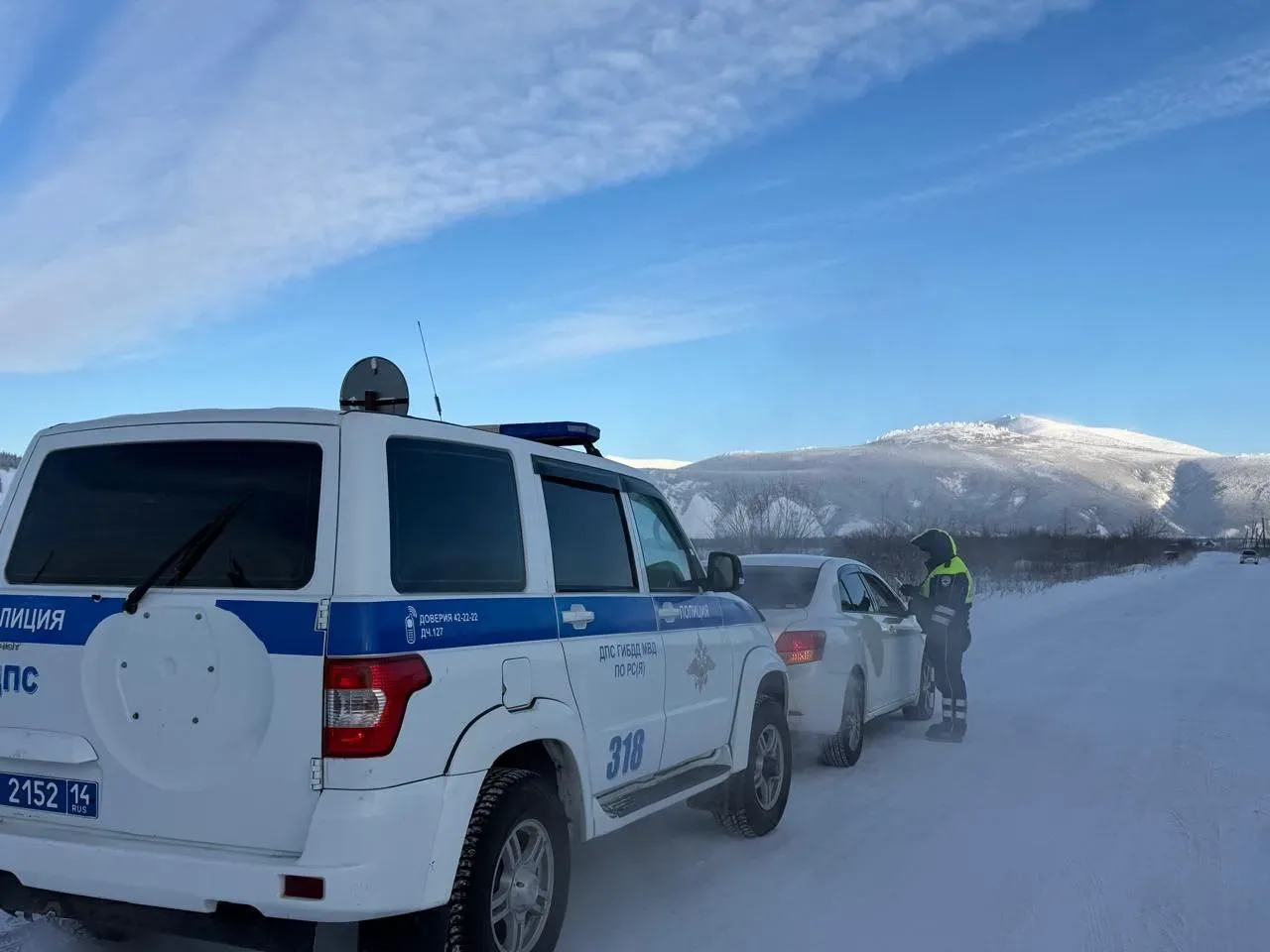 Сотрудник полиции вызвал эвакуатор для подъема транспортного средства. Женщин с детьми он отвез на стационарный пост, где они смогли обогреться и выпить горячего чая.