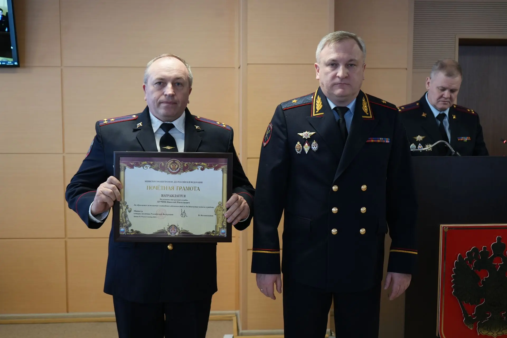 🏆 Затем состоялась торжественная церемония награждения. За достигнутые высокие показатели в служебной деятельности и в связи с празднованием Дня защитника Отечества ряду сотрудников органов внутренних дел вручены заслуженные награды.