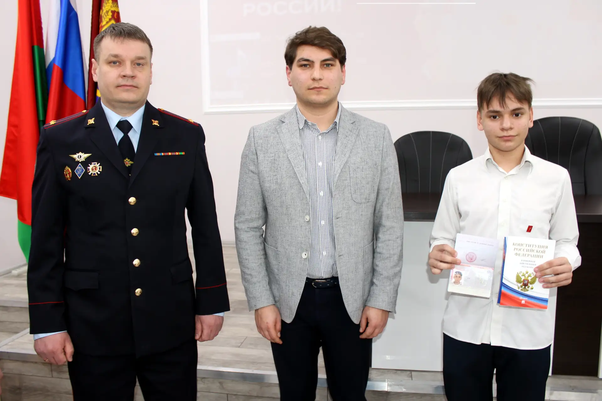 Вместе с паспортом каждый подросток получил экземпляр Конституции Российской Федерации – основного закона нашей страны – для понимания того, что основной документ дает немалые права, но вместе с тем накладывает и значительные обязанности.