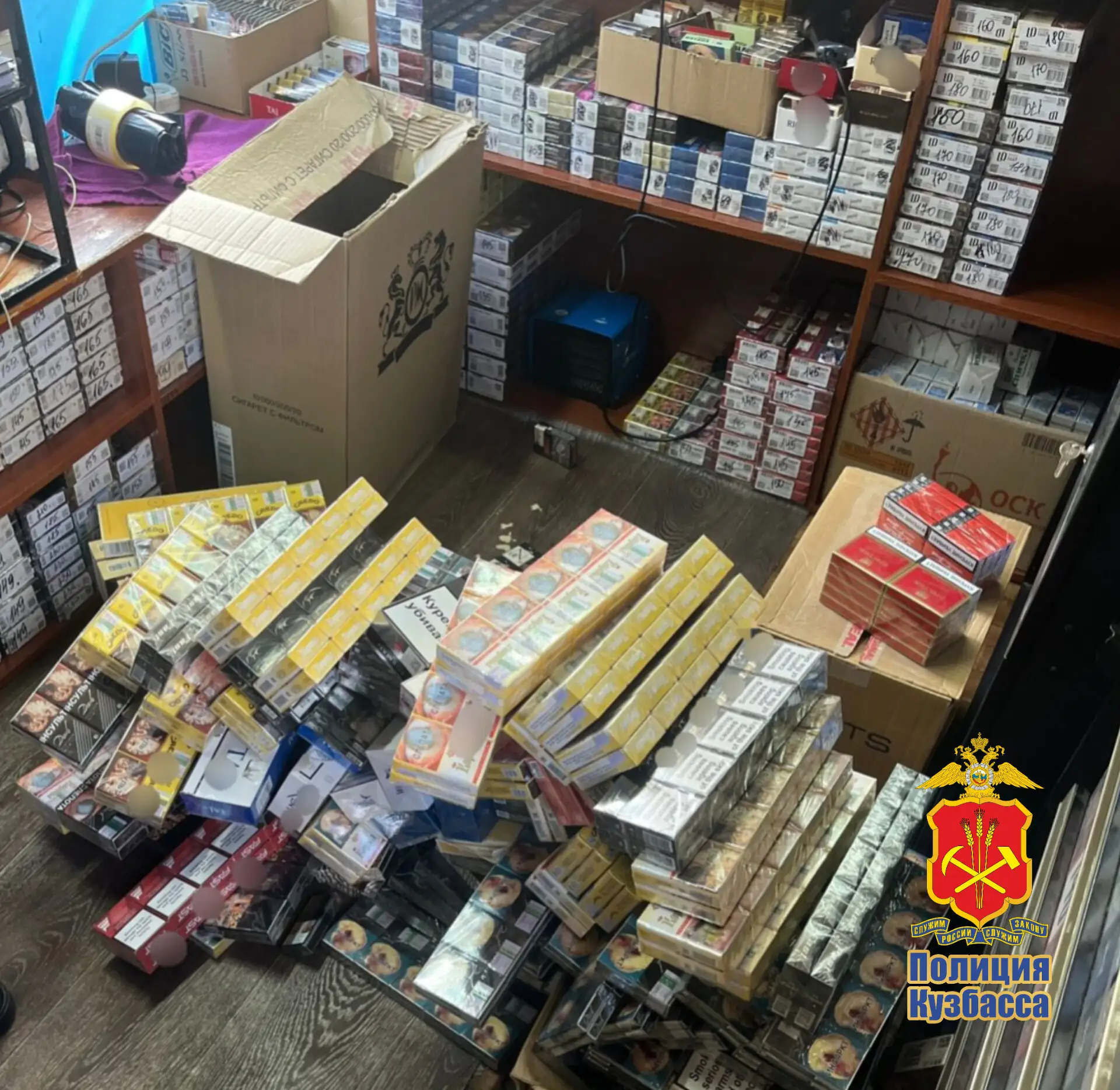 🤲В сентябре 2024 года сотрудниками управления экономической безопасности и противодействия коррупции ГУ МВД России по Кемеровской области – Кузбассу в ходе проведения оперативно-розыскного мероприятия из гаража, торговых киосков и магазинов было изъято около 8 000 пачек немаркированных сигарет. Согласно заключению специалистов Экспертно-криминалистического центра ГУ МВД России по Кемеровской области - Кузбассу, стоимость товара составила более 900 000 рублей.
