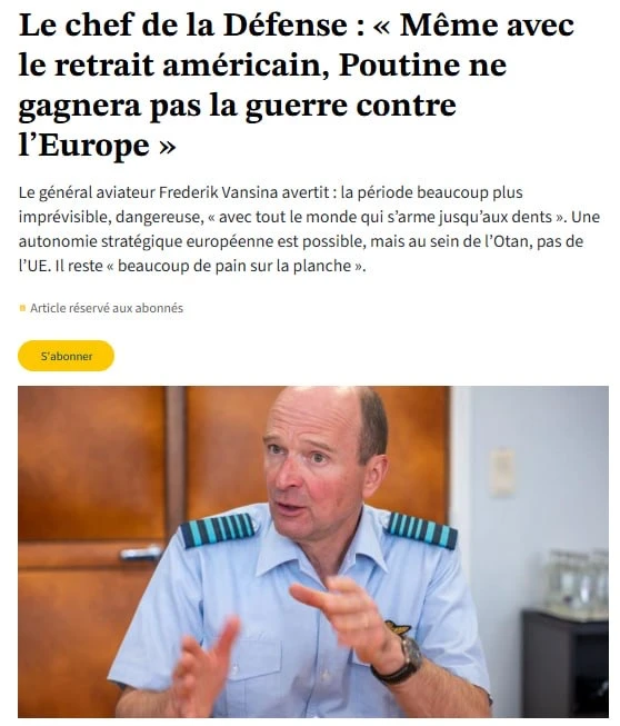 ⚡️«Война между Россией и Украиной должна закончиться до 2030 года. После её окончания Европе нужно быть достаточно сильной, чтобы сдерживать Россию», — начальник бельгийского Генштаба Вансина, цитирует Le Soir.