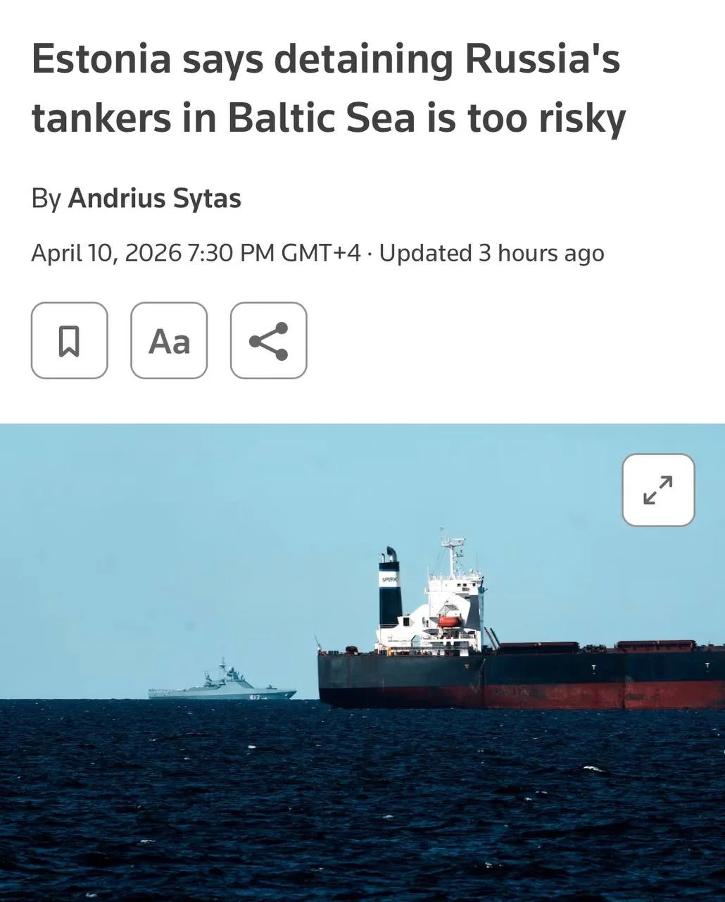 ⚡️Эстония не будет задерживать российские суда «теневого флота» в Балтийском море из-за риска эскалации.