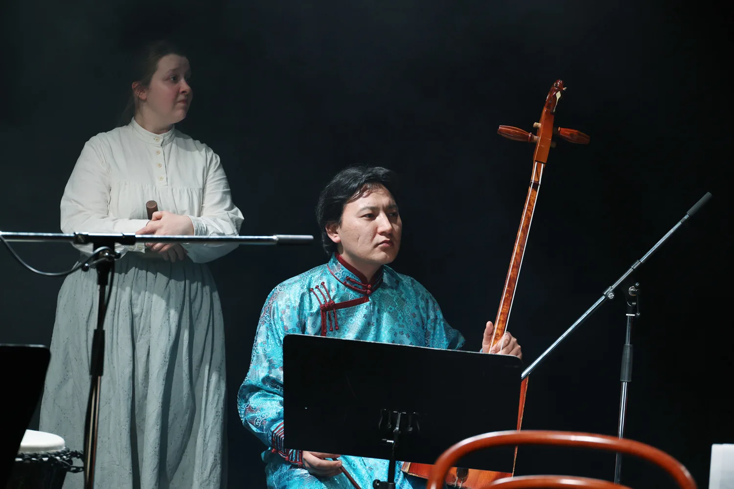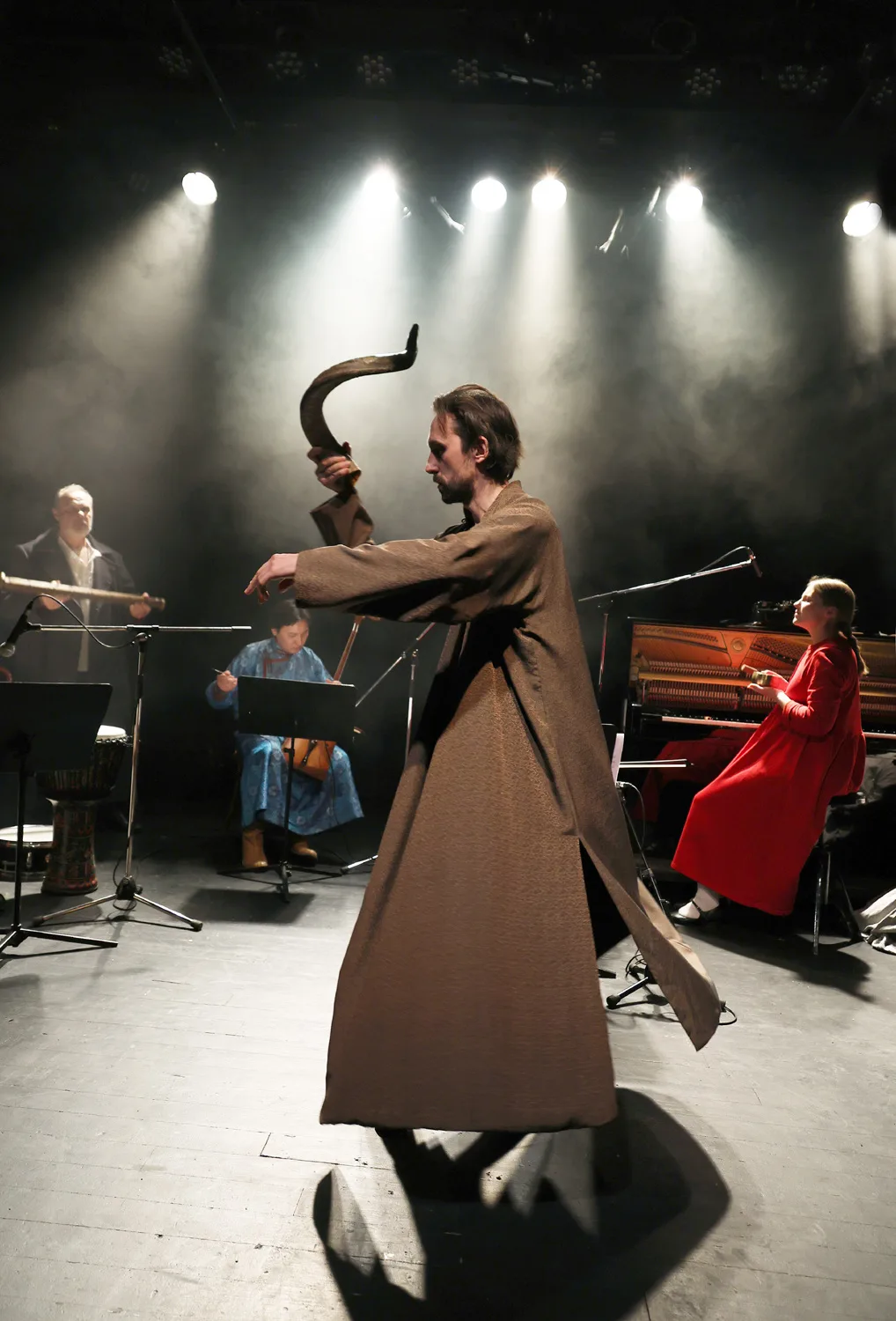 В камерном пространстве (художник Екатерина Гандель) классические музыкальные инструменты и этнические (такие как палка дождя, тибетская чаша) становятся и декорациями, и полноценными участниками действия.