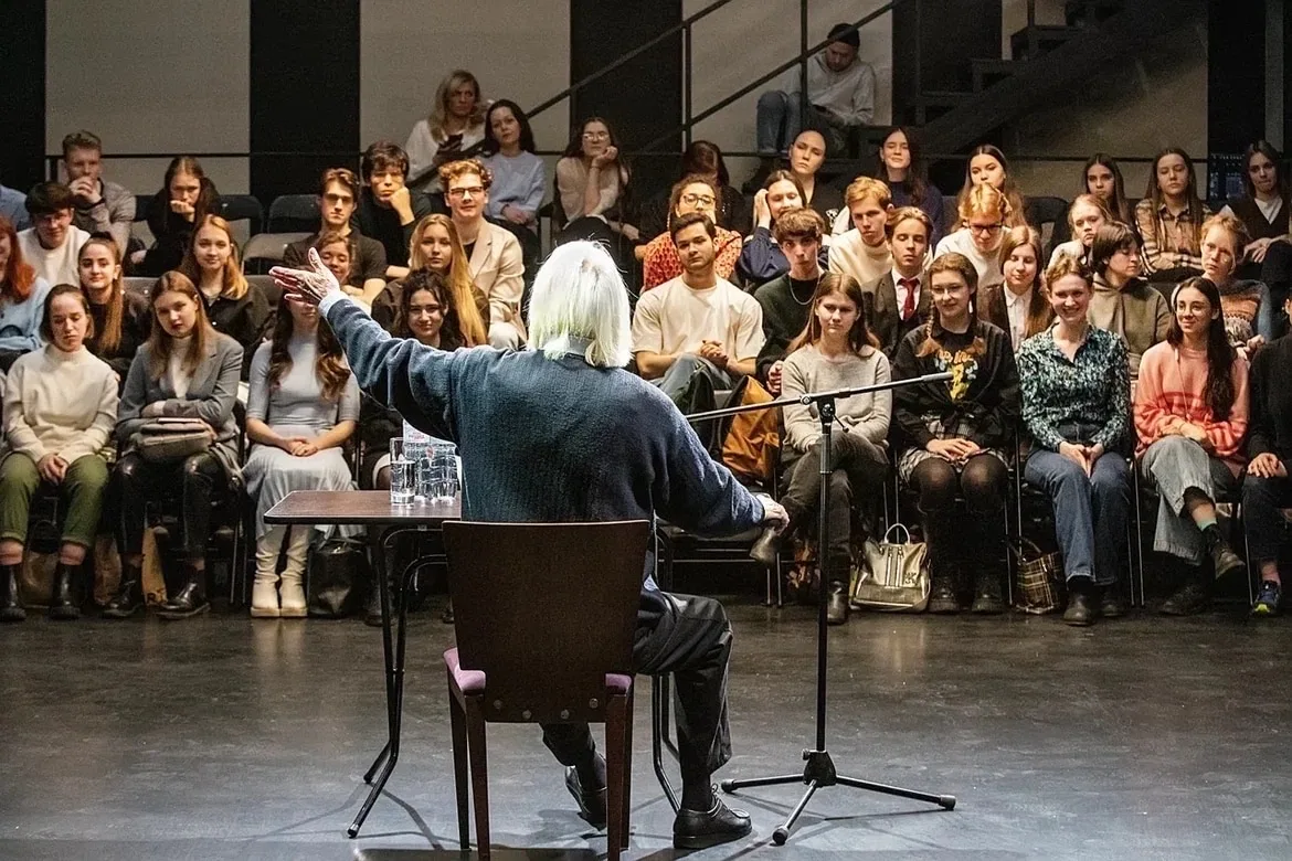 Николай Игоревич практически не дает интервью, рассказывая о профессии только своим студентам (он преподавал в ГИТИСе, а сейчас ведет курс в Школе-студии МХАТ), так что эта встреча была по-настоящему уникальной, что подтверждал и аншлаг в зрительном зале.