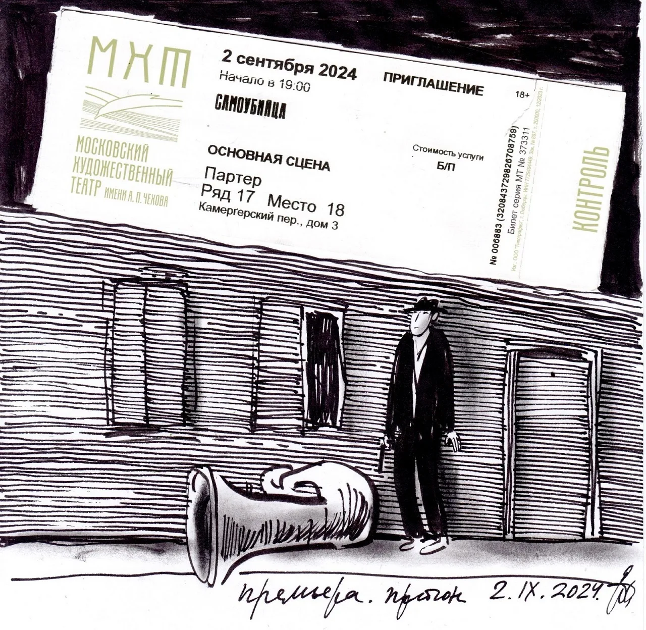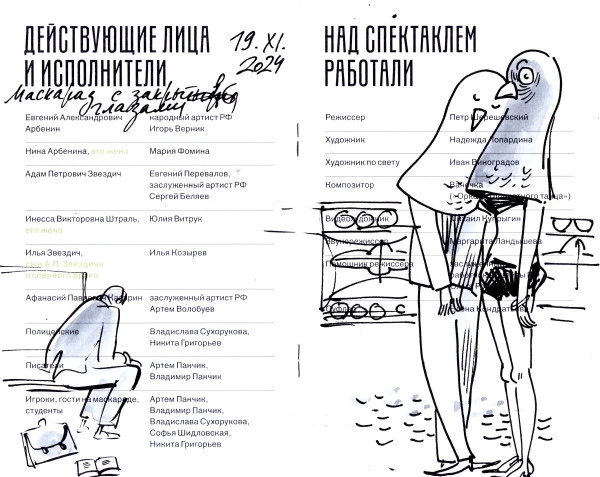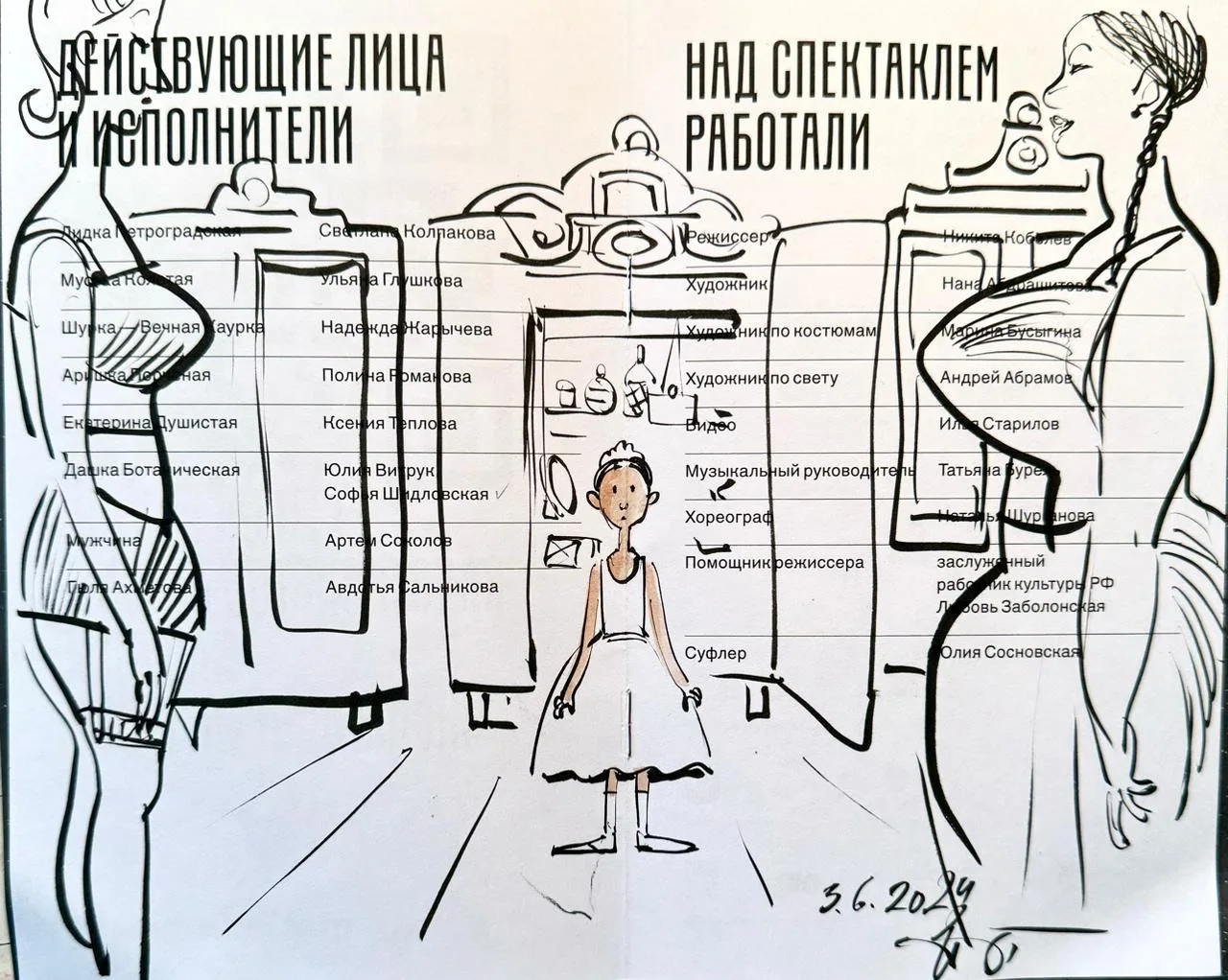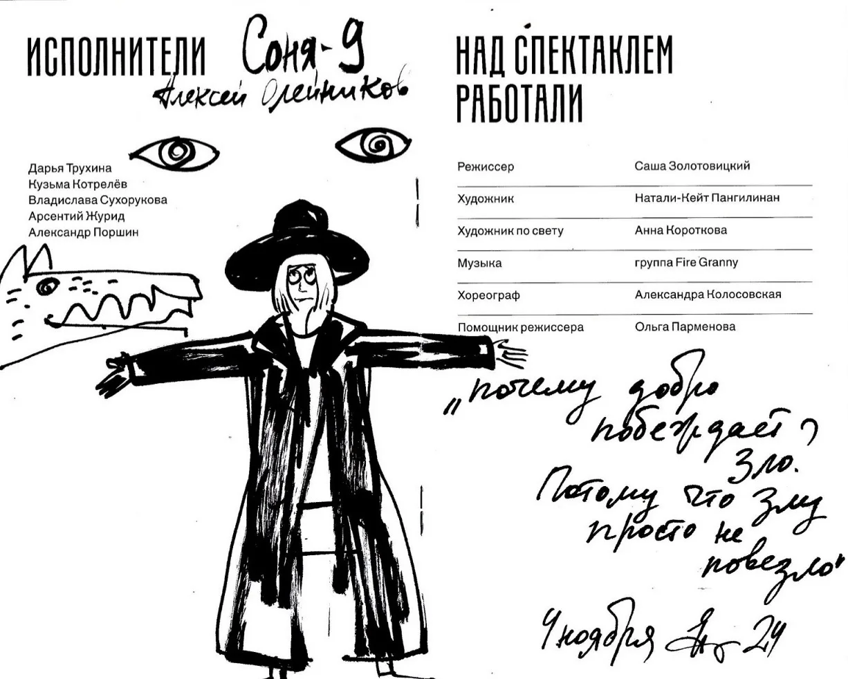 🌀 Евгения Двоскина – известный книжный график, иллюстратор многих детских книг и, к нашей радости, зритель Художественного театра. У неё есть прекрасная традиция зарисовывать на программках впечатления от увиденного.