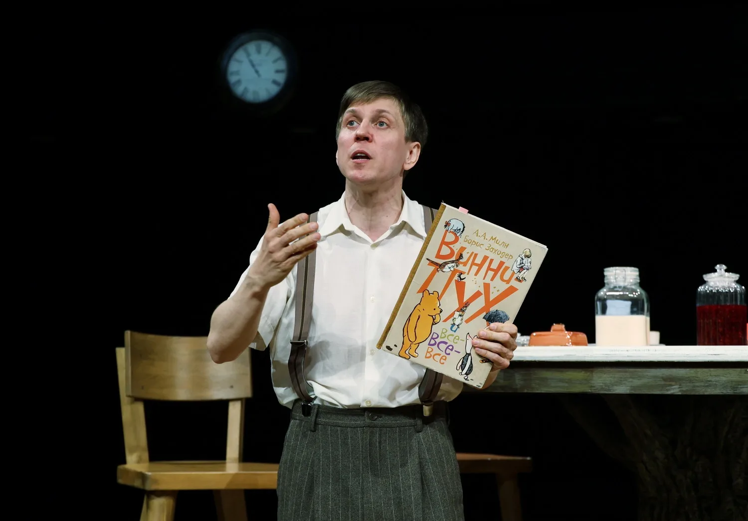Вчера в спектакле «Винни-Пуховские чтения» Алексей Краснёнков впервые исполнил роль Ведущего (он же Кристофер Робин). Это был 60-й показ спектакля и первый – без Игоря Яковлевича Золотовицкого, который ранее играл эту роль.