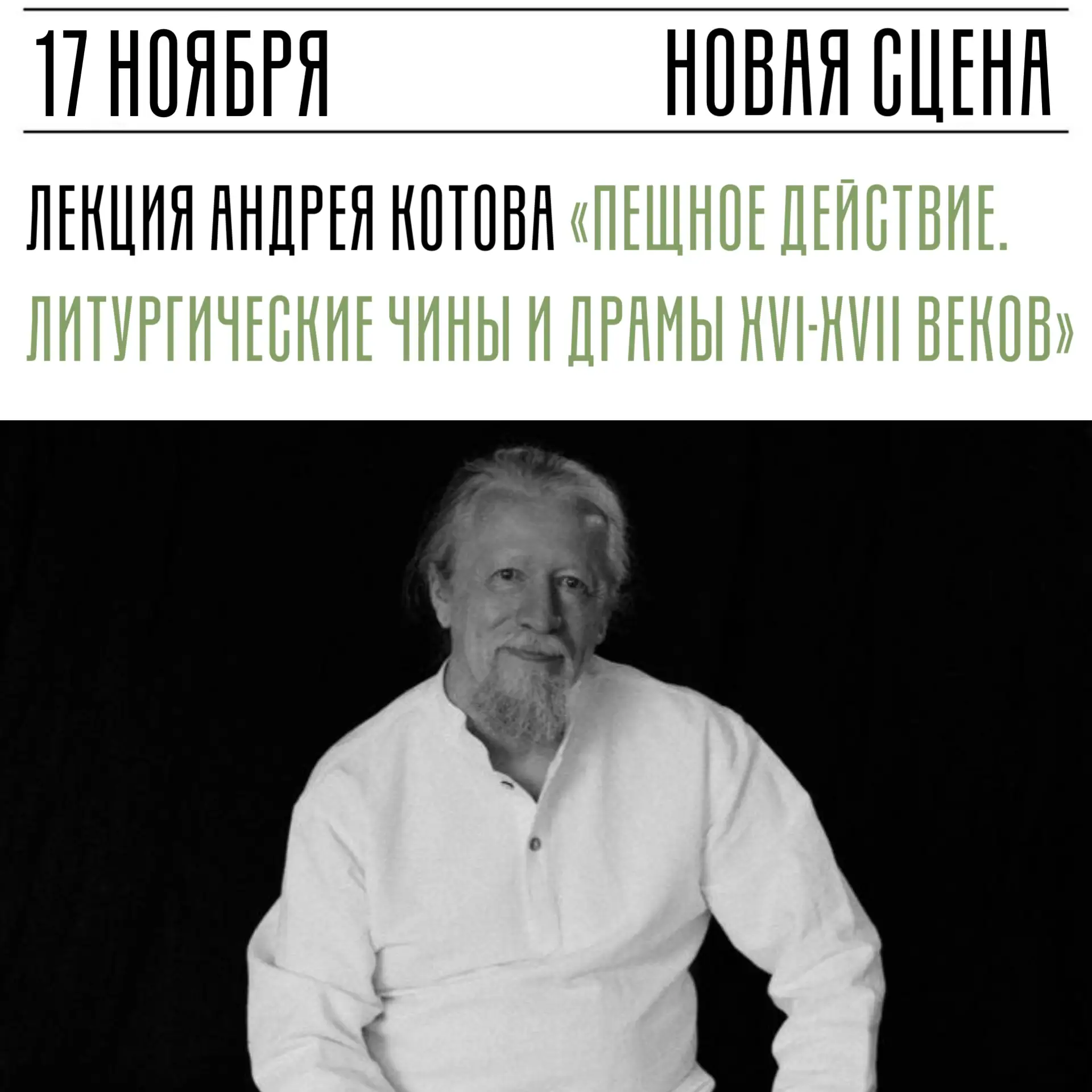 17 ноября в 19:00 на Новой сцене состоится лекция музыканта Андрея Николаевича Котова «Пещное действие. Литургические чины и драмы XVI-XVII веков».