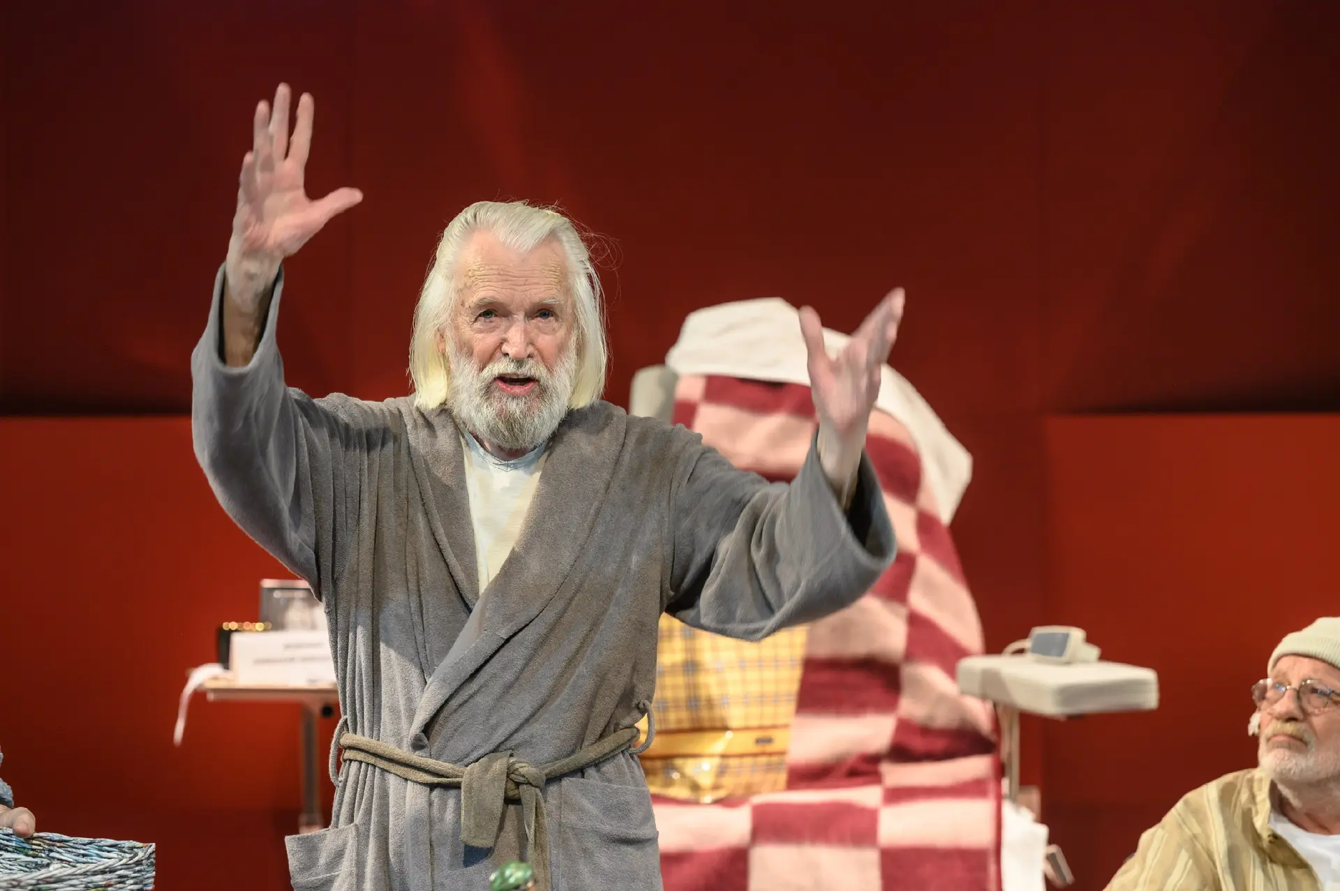 Буквально на днях в спектакле «9 ряд. 10, 11 место» он в дуэте с Еленой Шаниной играл историю несбывшейся любви. Послезавтра, 8 апреля, артист выйдет на сцену в «Игре в «Городки»», а уже 10-го сыграет главную роль в спектакле «Третий звонок, господа!» по рассказу Куприна «На покое». Инициатором этой постановки об актёрах, покинувших сцену, был сам Любшин, и три года назад премьера вышла к его юбилею.
