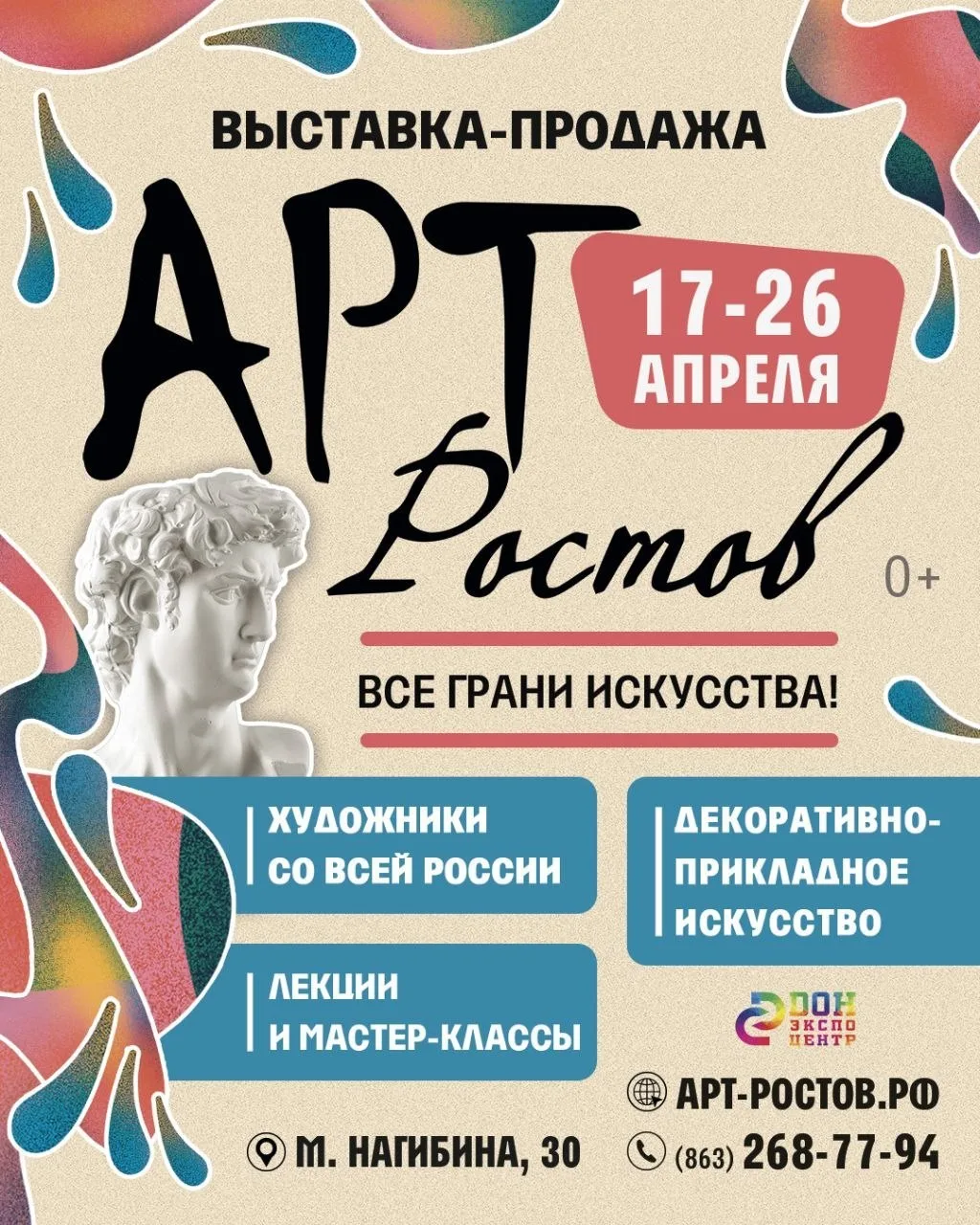 17–26 апреля, «ДонЭкспоцентр» — «Арт-Ростов», крупнейшая выставка-продажа искусства на Юге России.