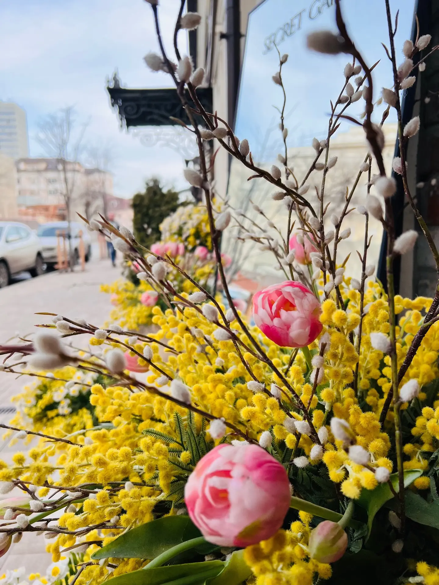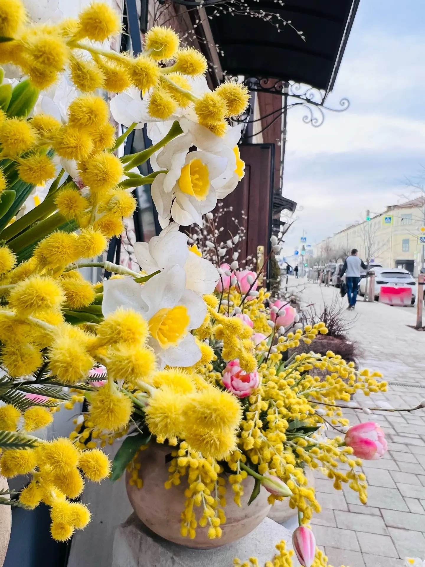 У дома №10 расцвела новая весенняя точка притяжения — небольшой уголок тепла и ярких красок среди городской суеты.