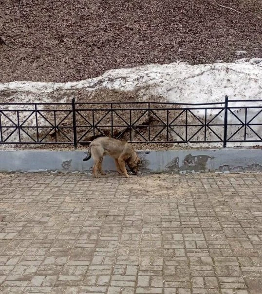 Вечером 3 апреля её видели на перекрёстке у школы №3 и магазина «Йола», утром 5 апреля — в саду Эрмитаж и в направлении центра. Собака обнюхивает прохожих и ищет еду.