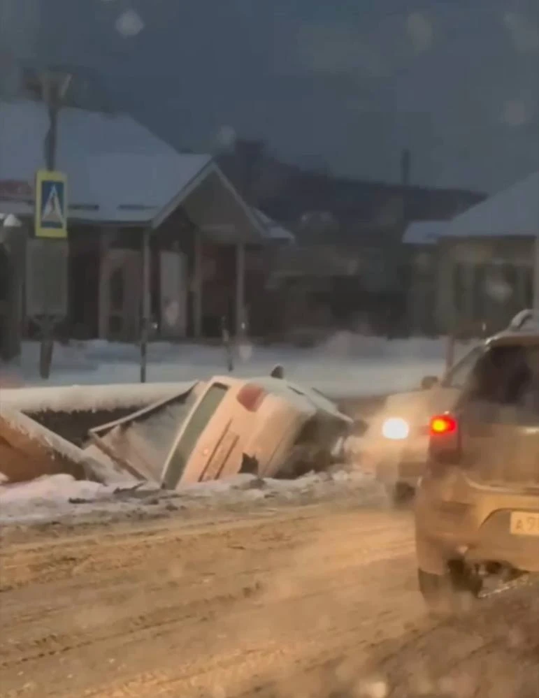 ❗️На Магистральной легковушка провалилась в яму под замену труб.