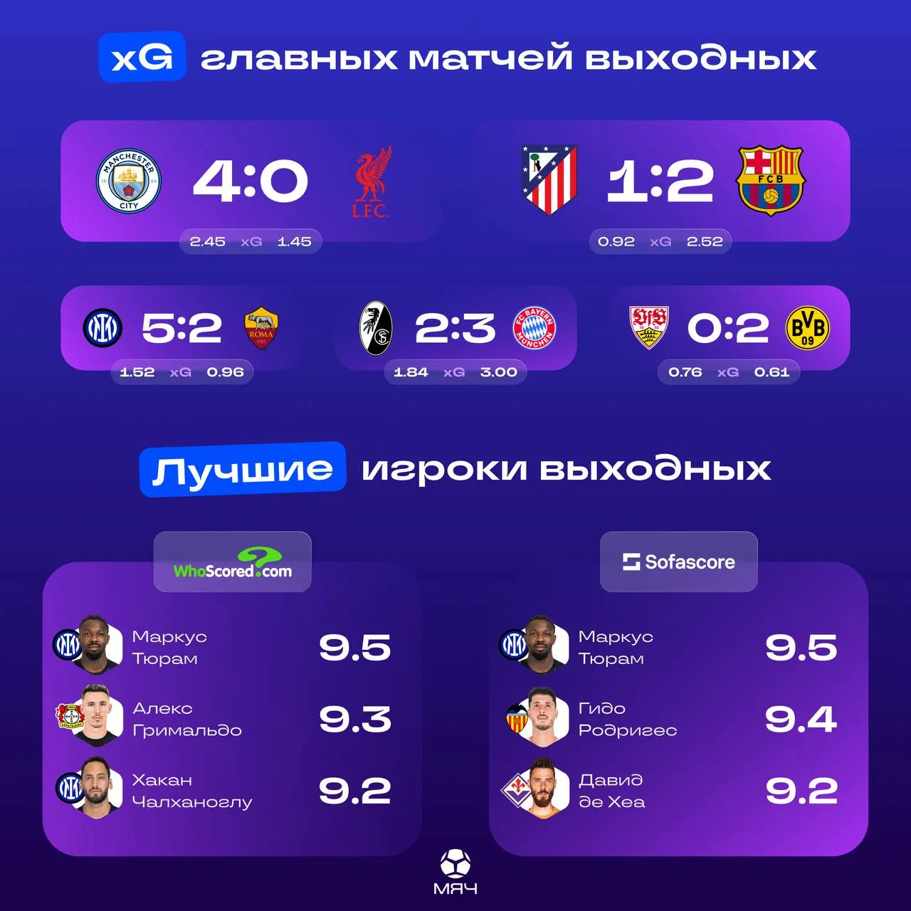 ⚽️ Маркус Тюрам с голом и дублем из ассистов + Хакан Чалханоглу с 1+1 против «Ромы»;
