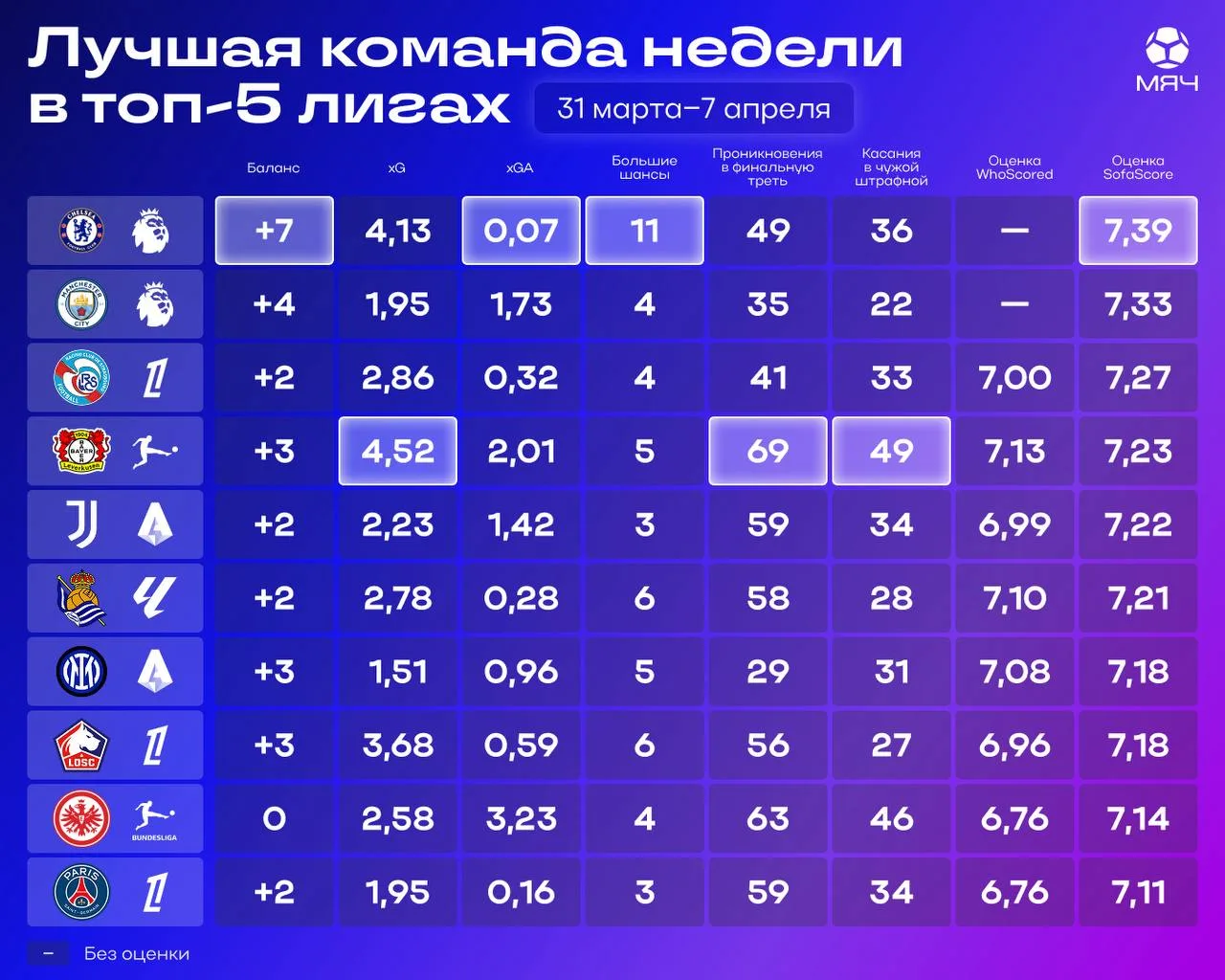 P.S. Оценки WhoScored в этот раз не вошли в итоговую сумму, учитывая отсутствие их на данном портале у «Сити» и «Челси».